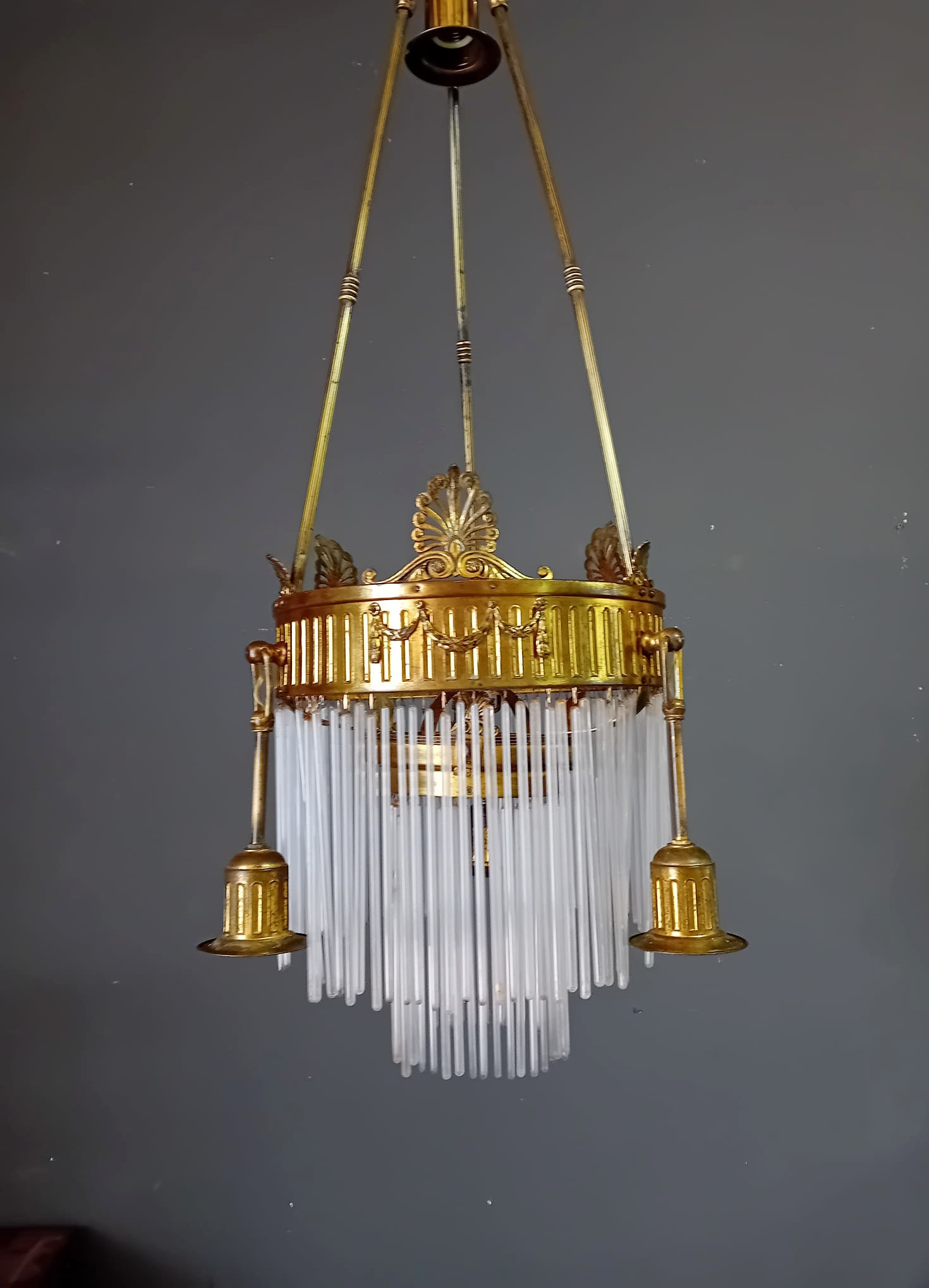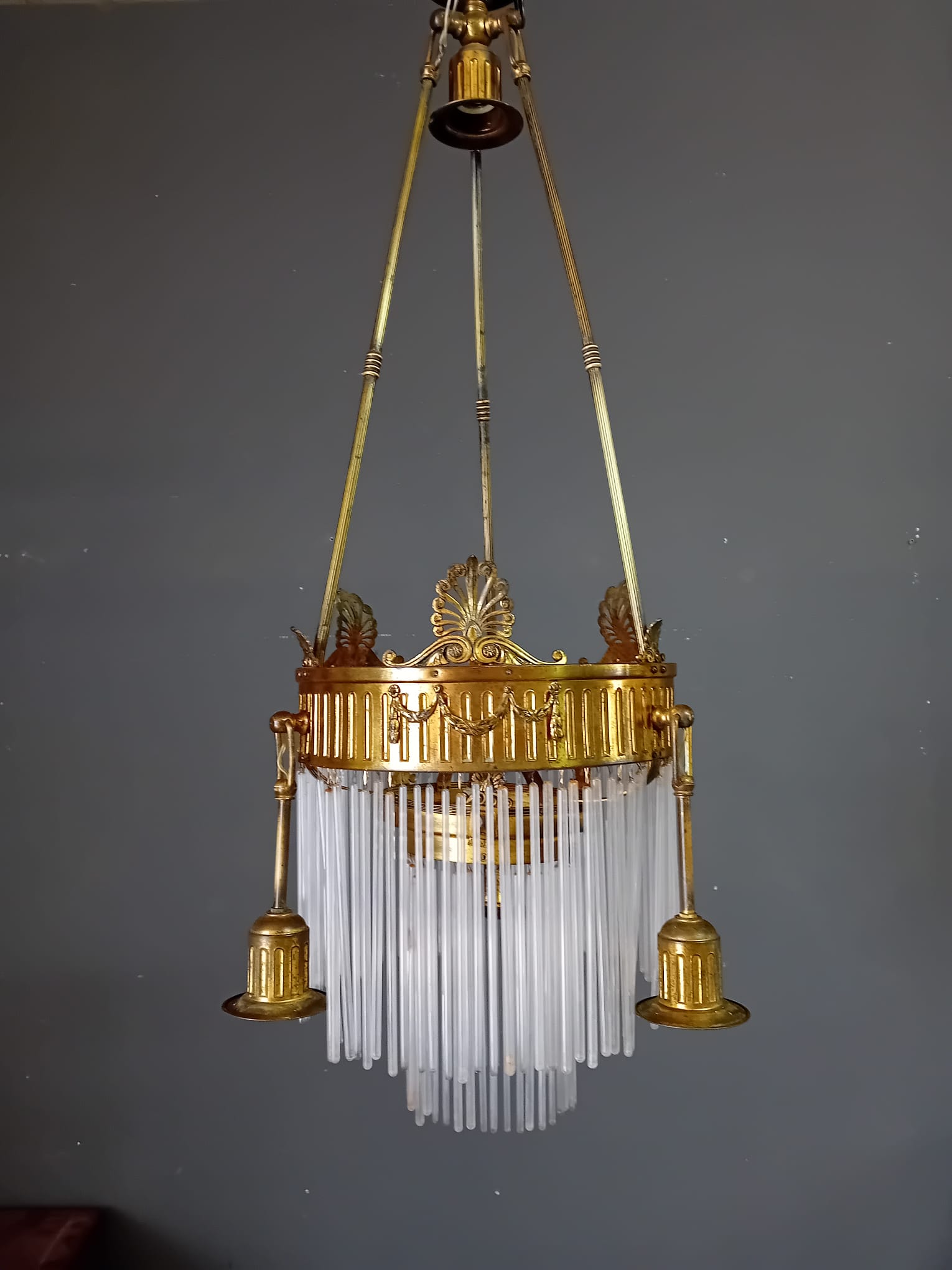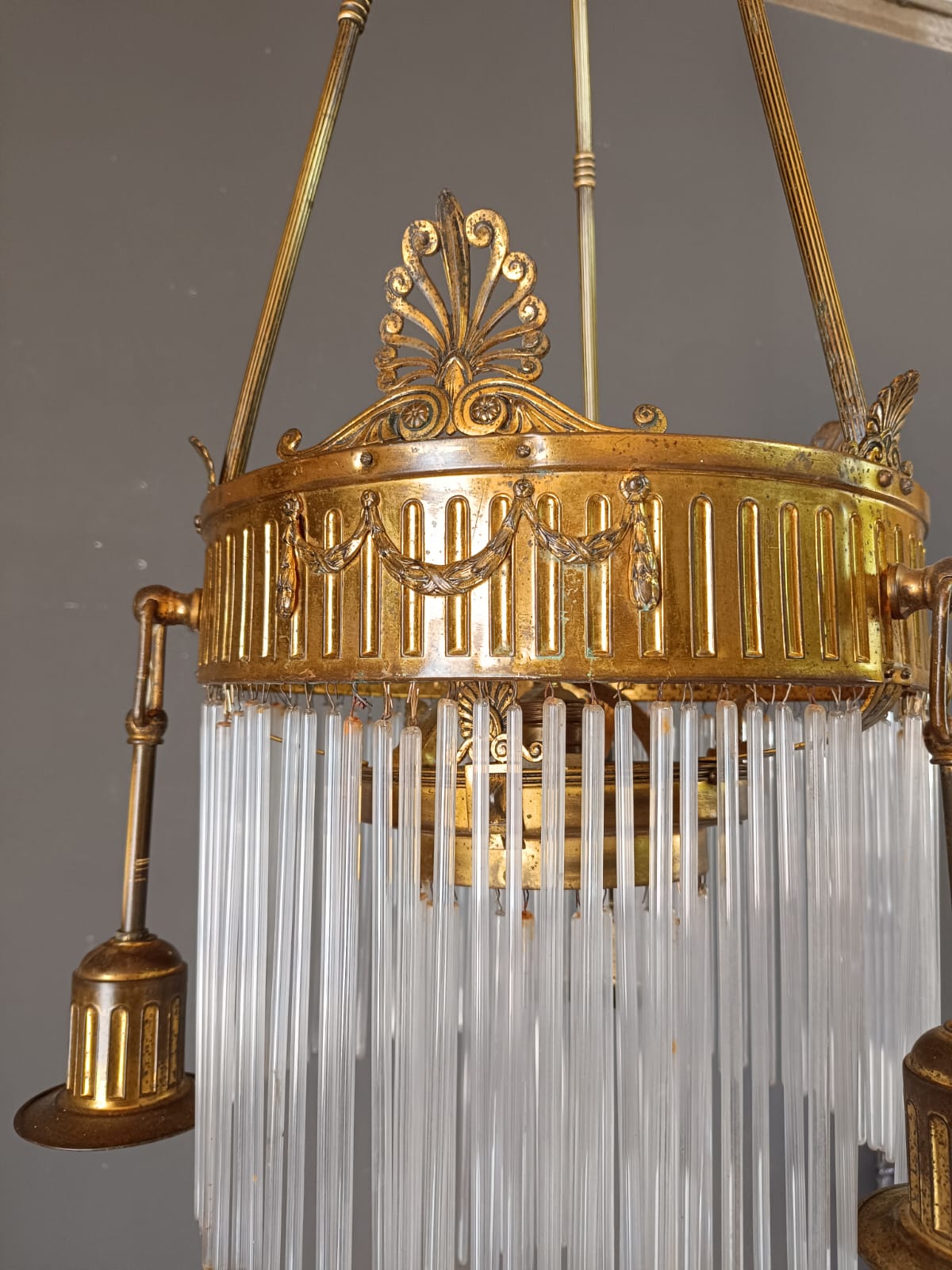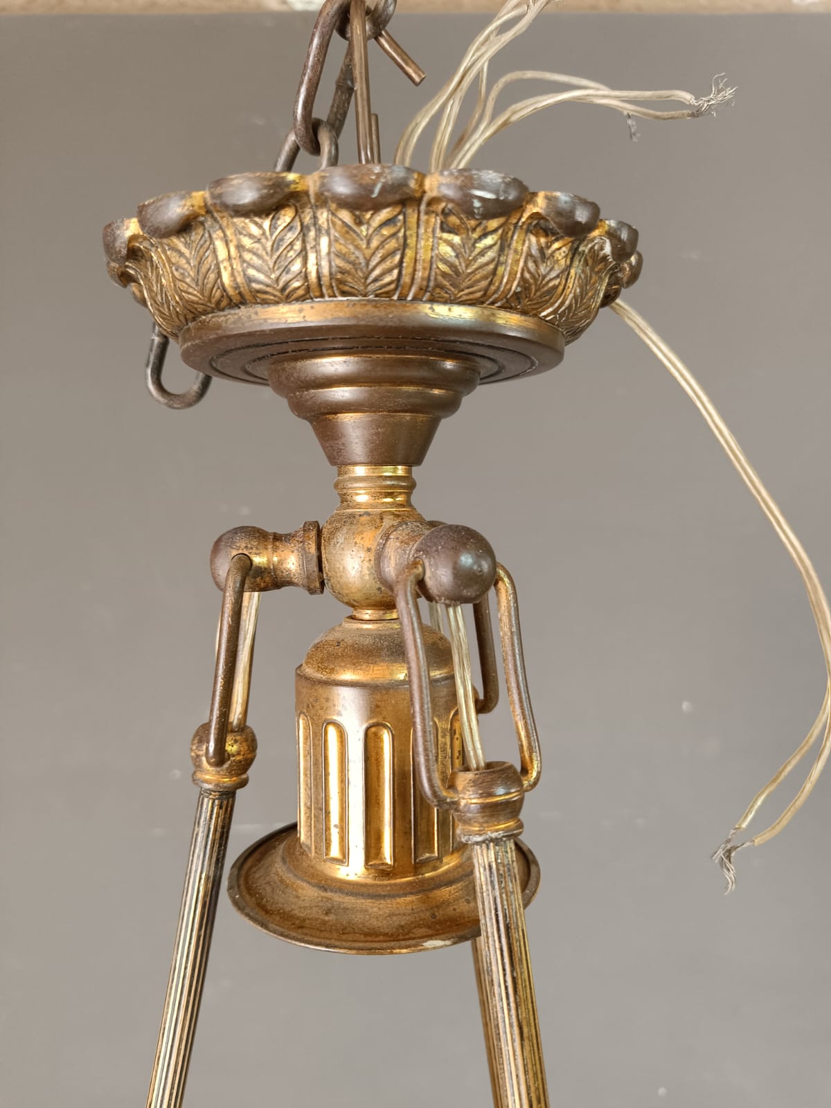 Liberty-style chandelier in gilded bronze with 5 lights and opaline glass straws.