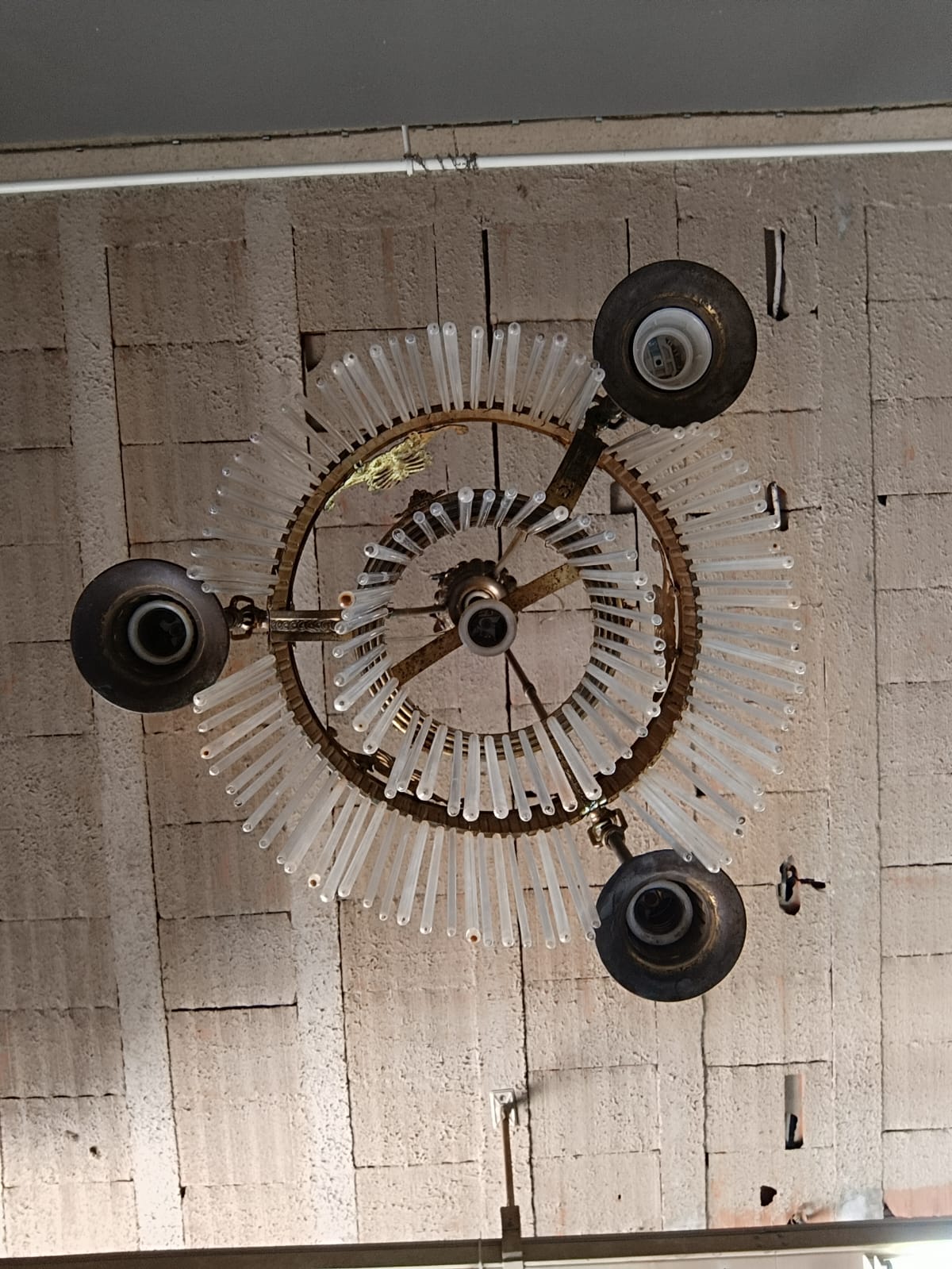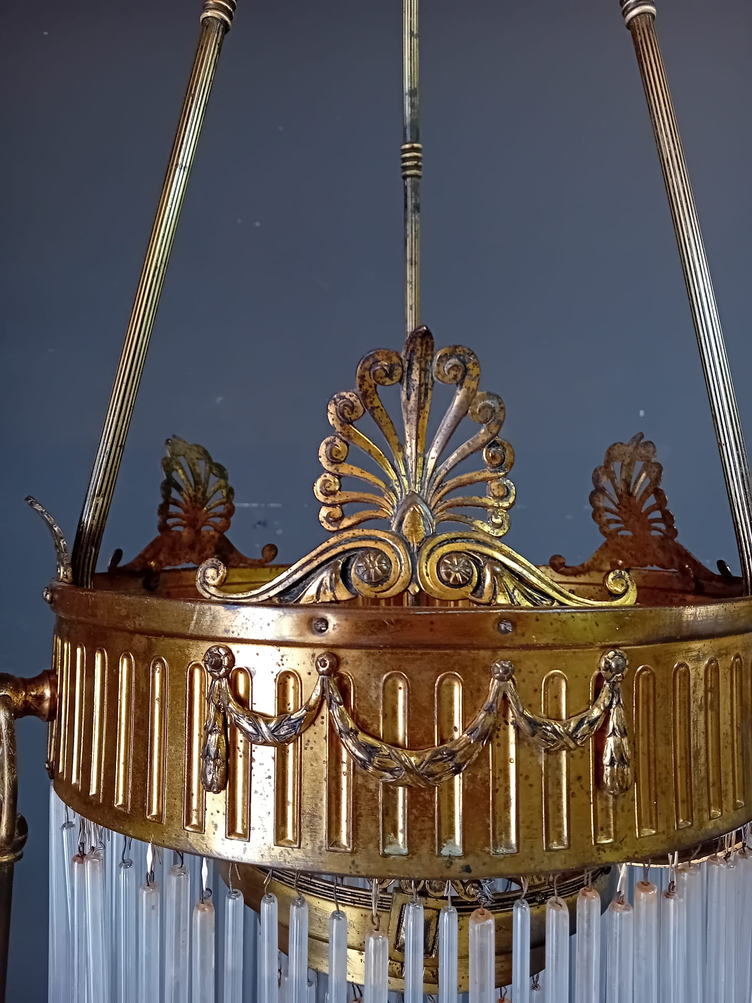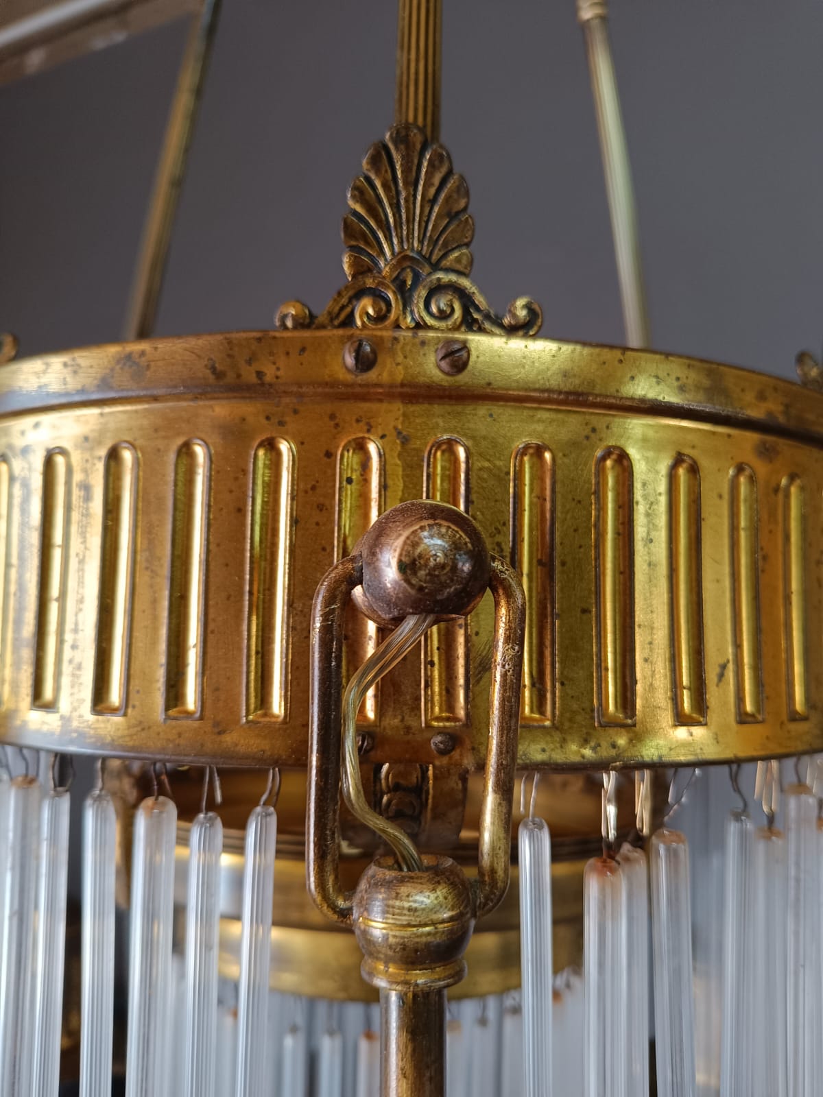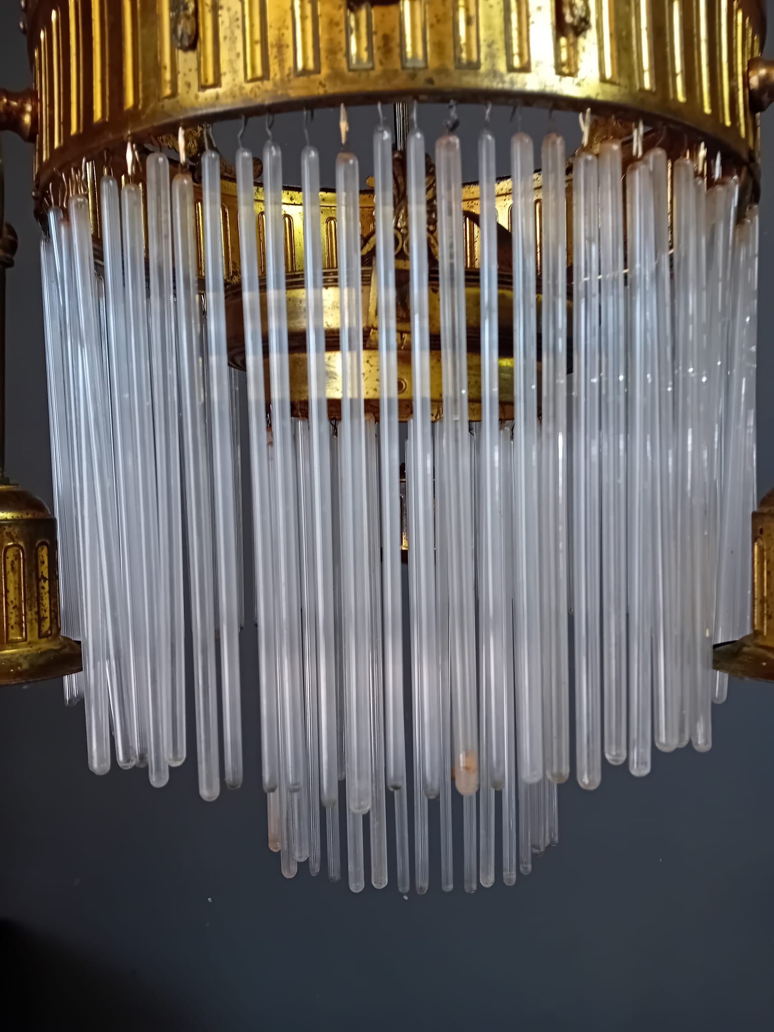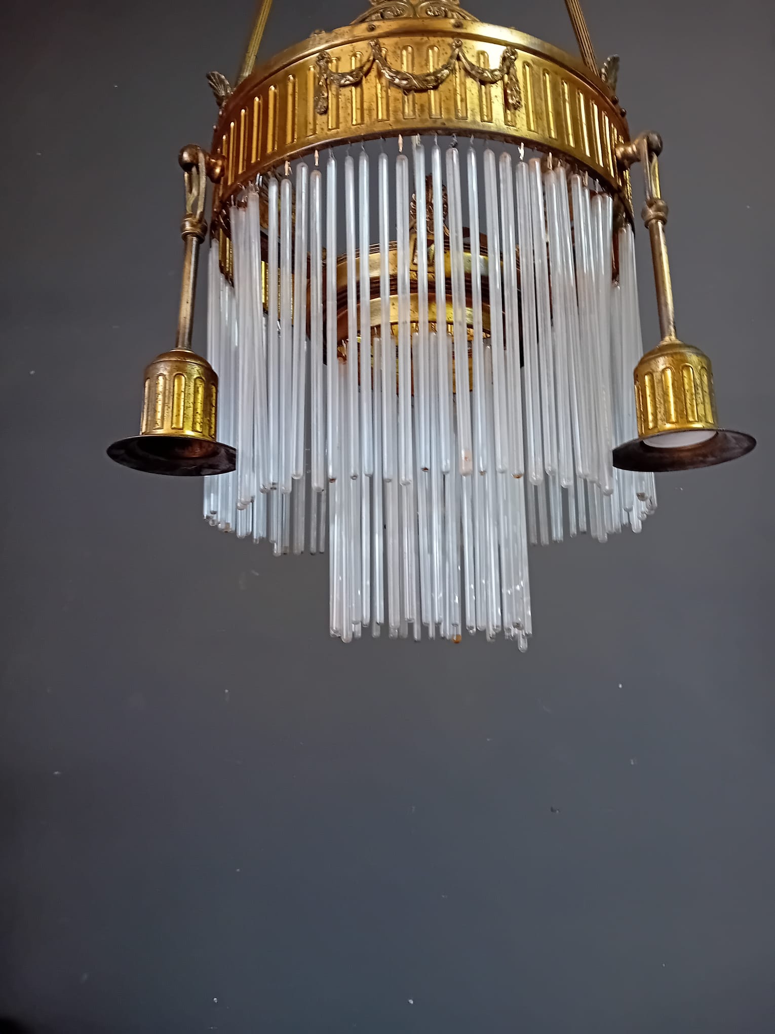 Liberty-style chandelier in gilded bronze with 5 lights and opaline glass straws.