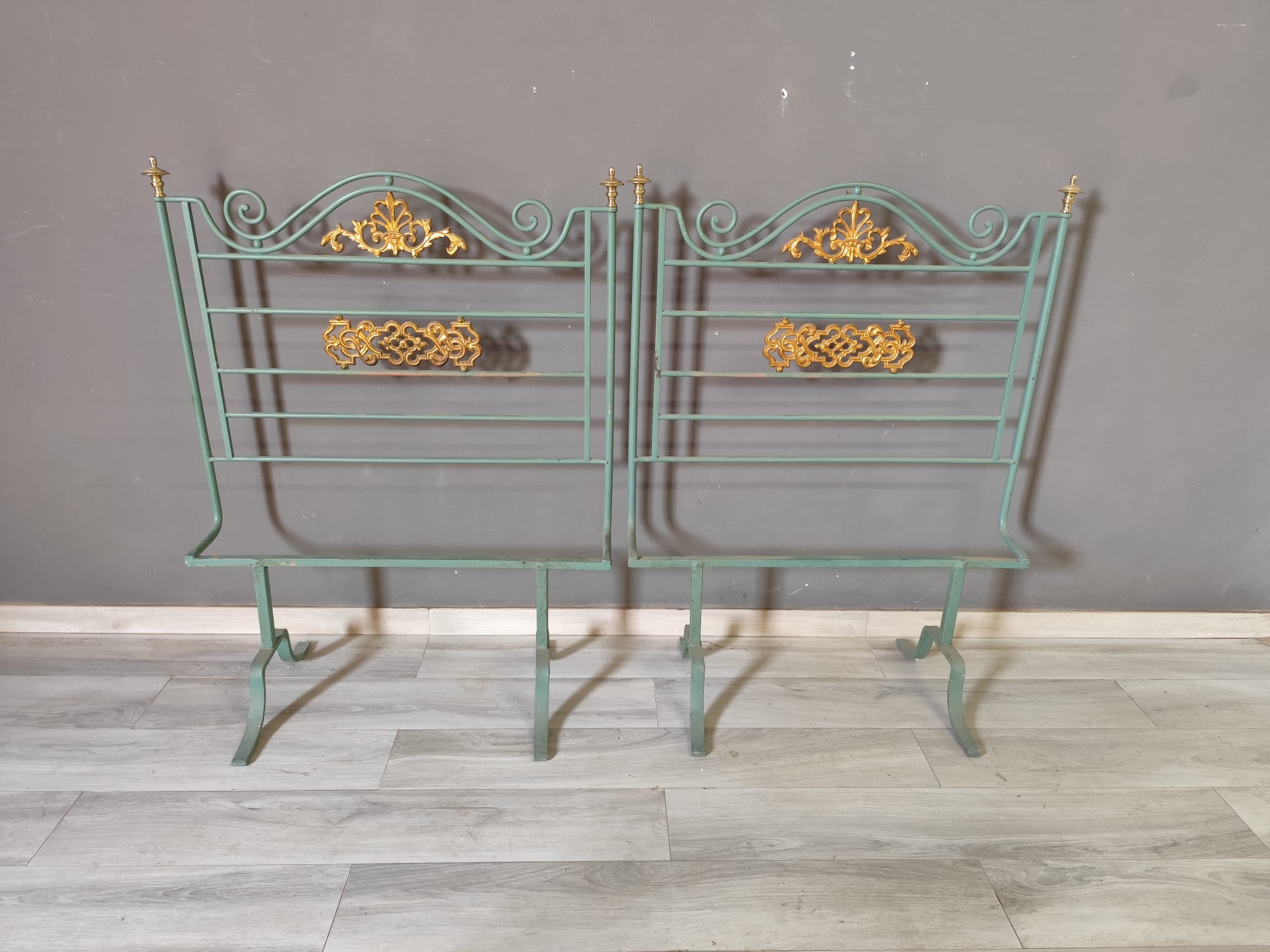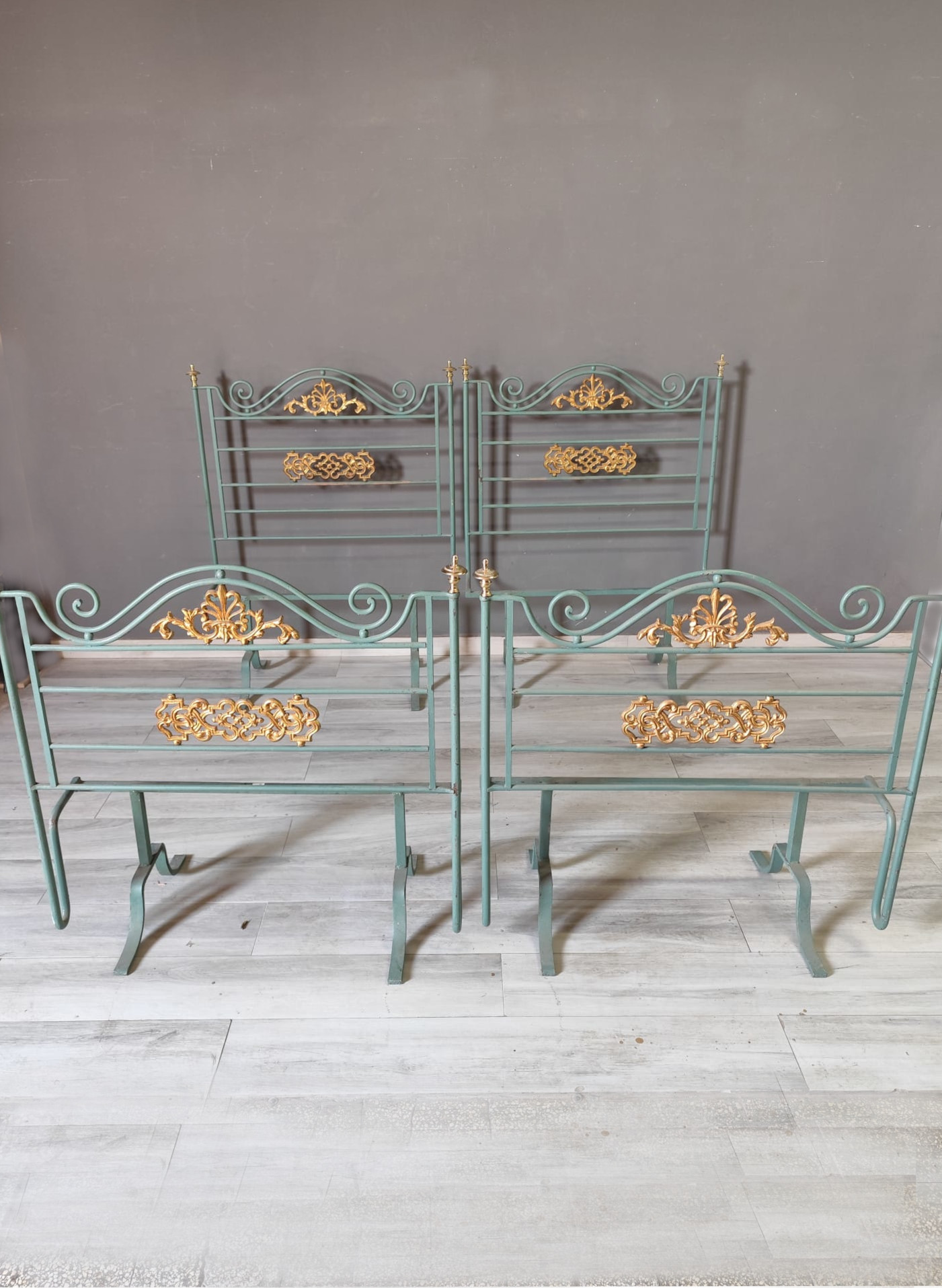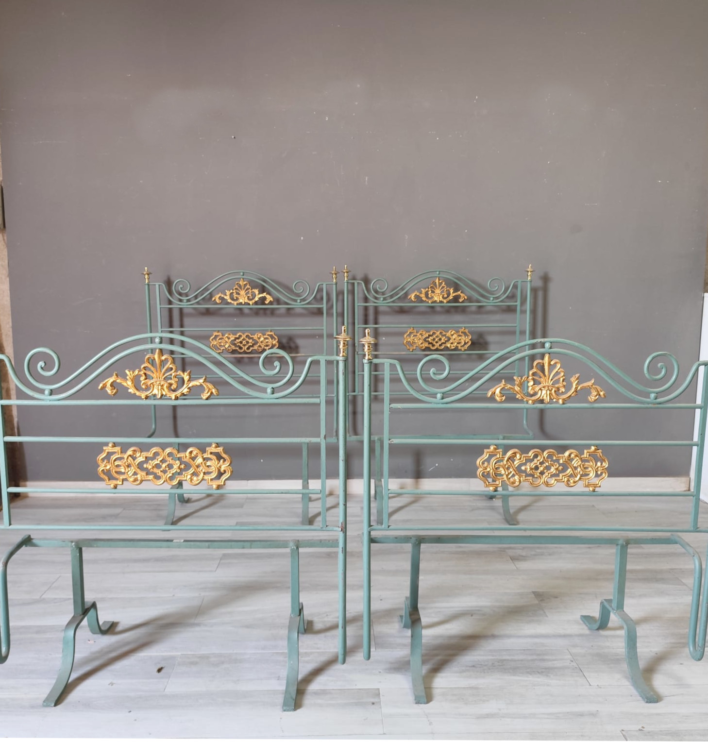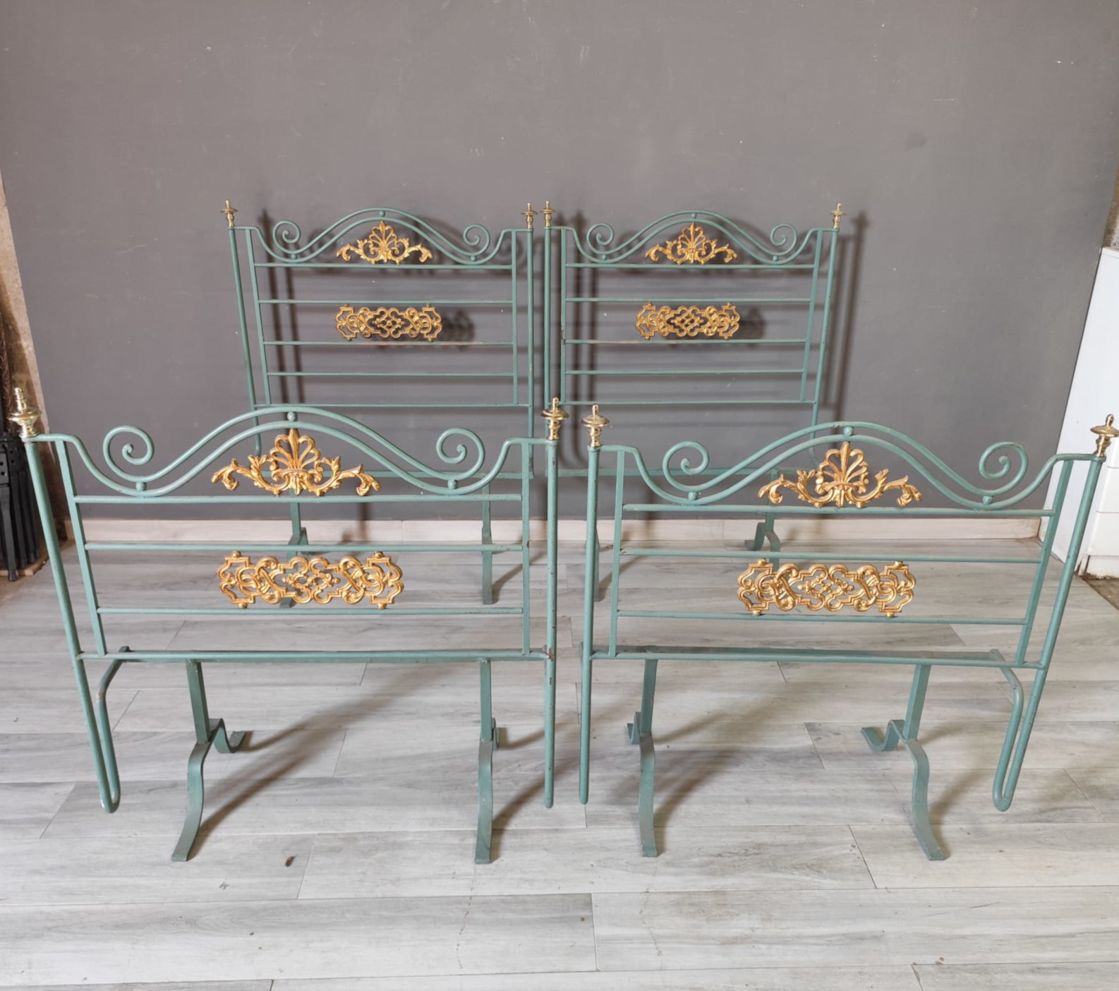 Importante coppia di letti singoli o ad uso matrimoniale della metà del ‘800 in ferro battuto. Dettagli in ghisa e pomelli autentici in ottone. In buono stato conservativo. Provenienza sud Italia.