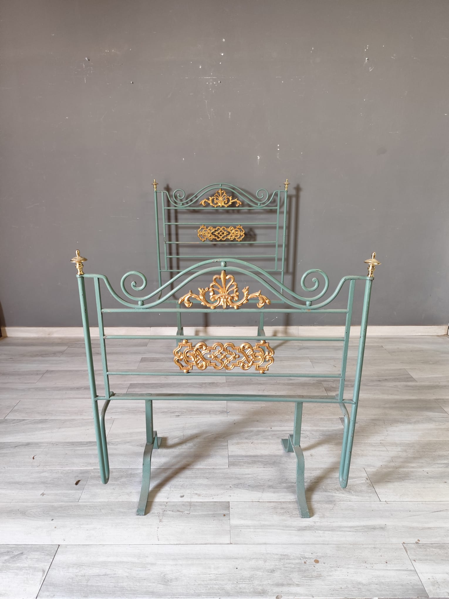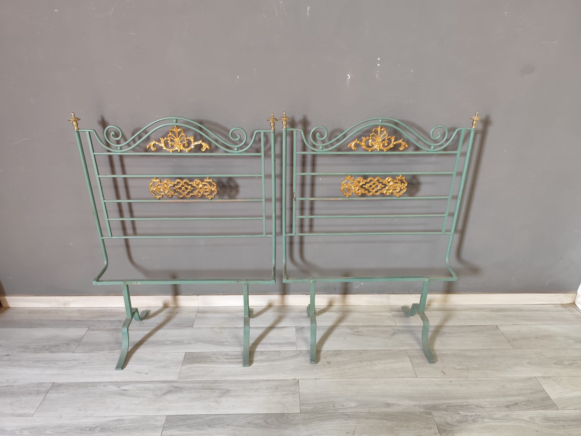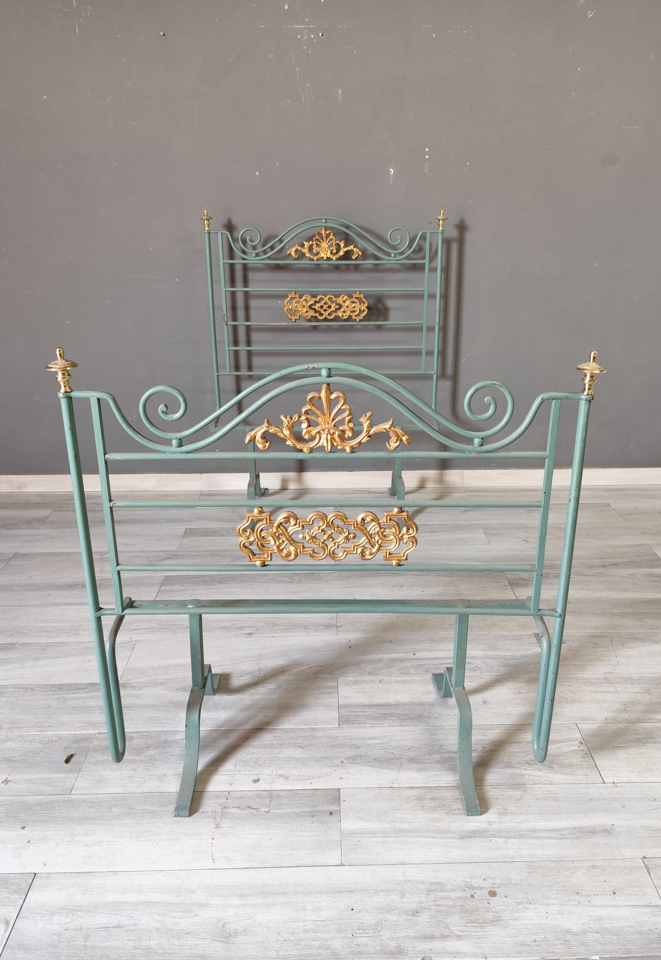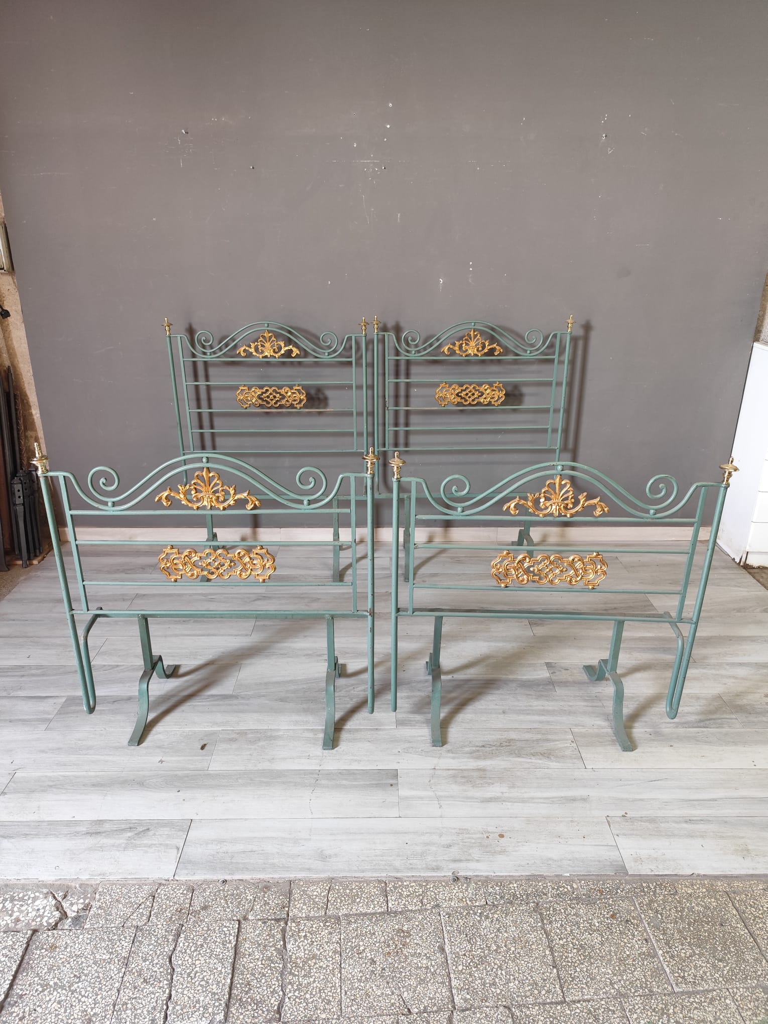 Importante coppia di letti singoli o ad uso matrimoniale della metà del ‘800 in ferro battuto. Dettagli in ghisa e pomelli autentici in ottone. In buono stato conservativo. Provenienza sud Italia.