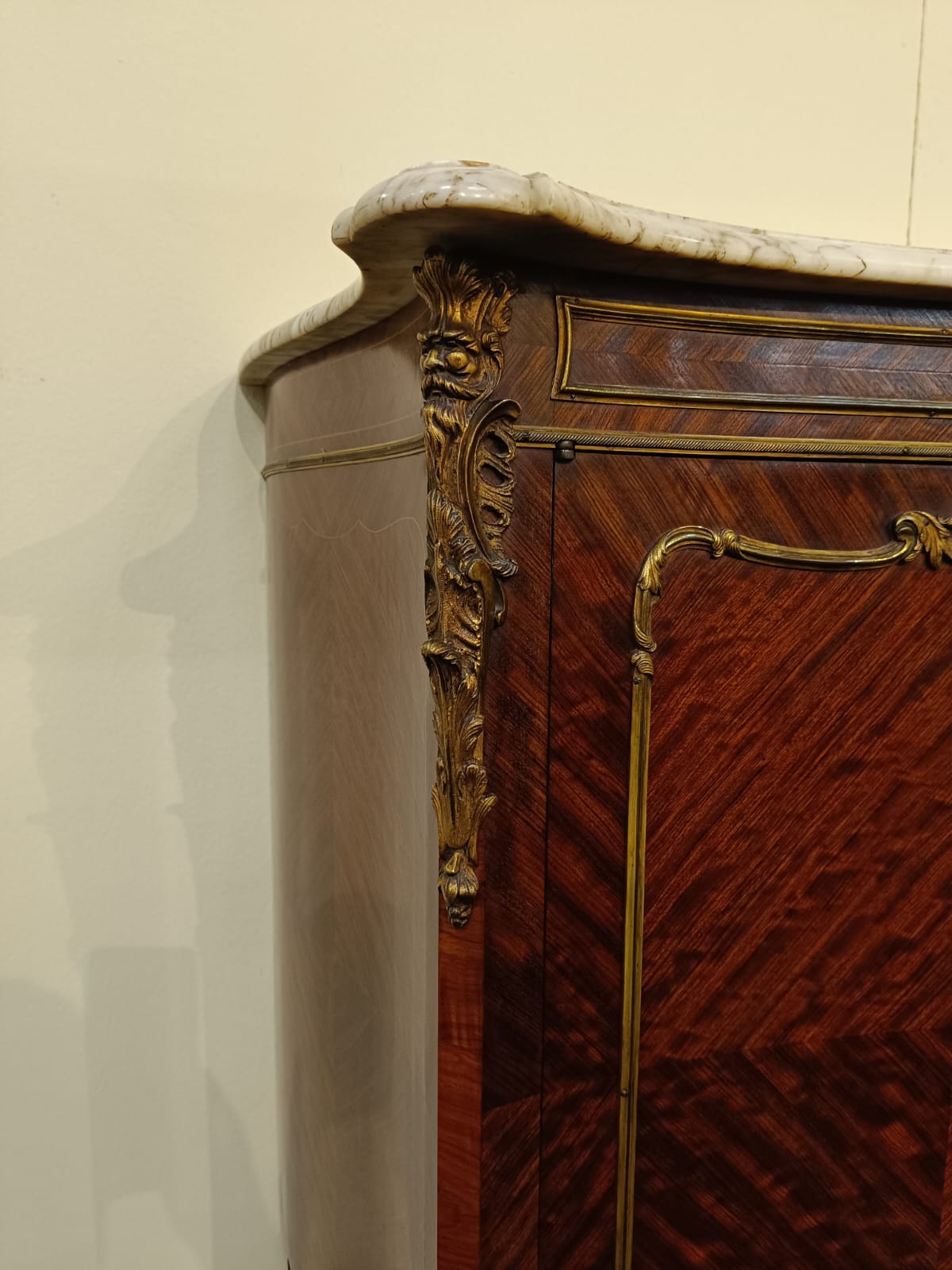 Raffinata servante Napoleone III in stile Luigi XV realizzata con mogano ed applicazioni in bronzo dorato. Meraviglioso il top in marmo a scaglioni sagomato.