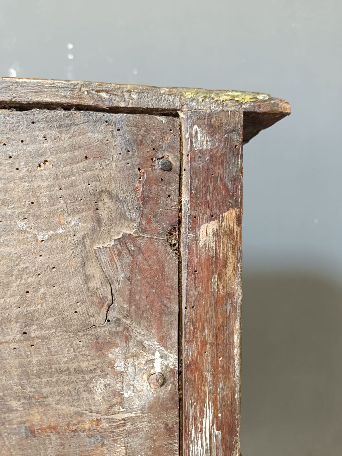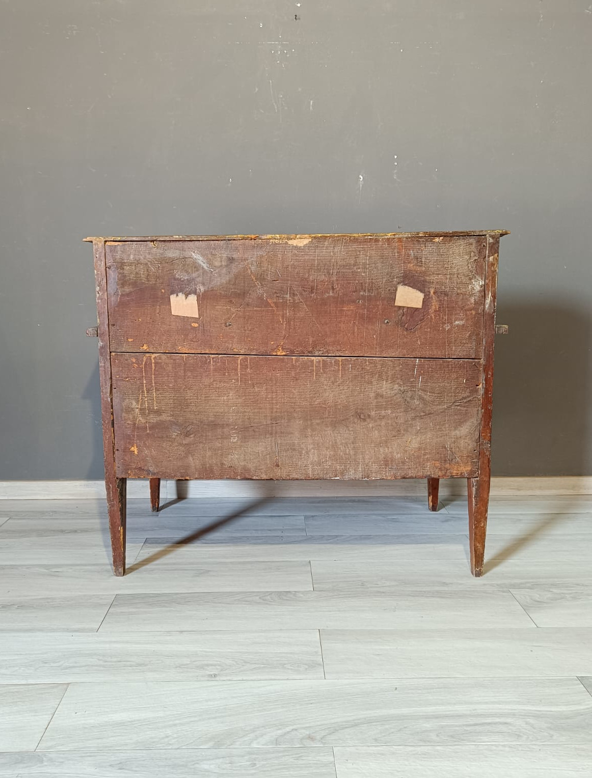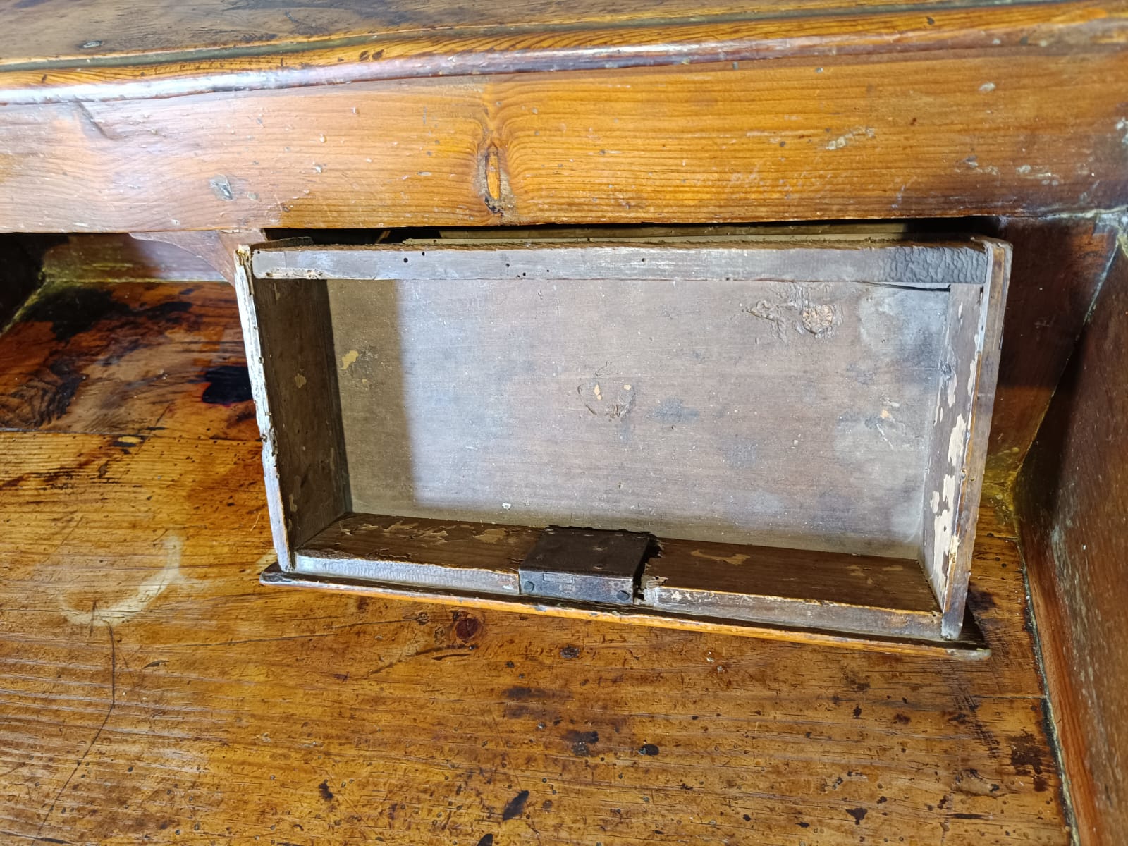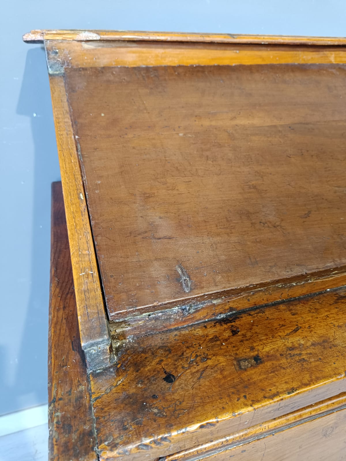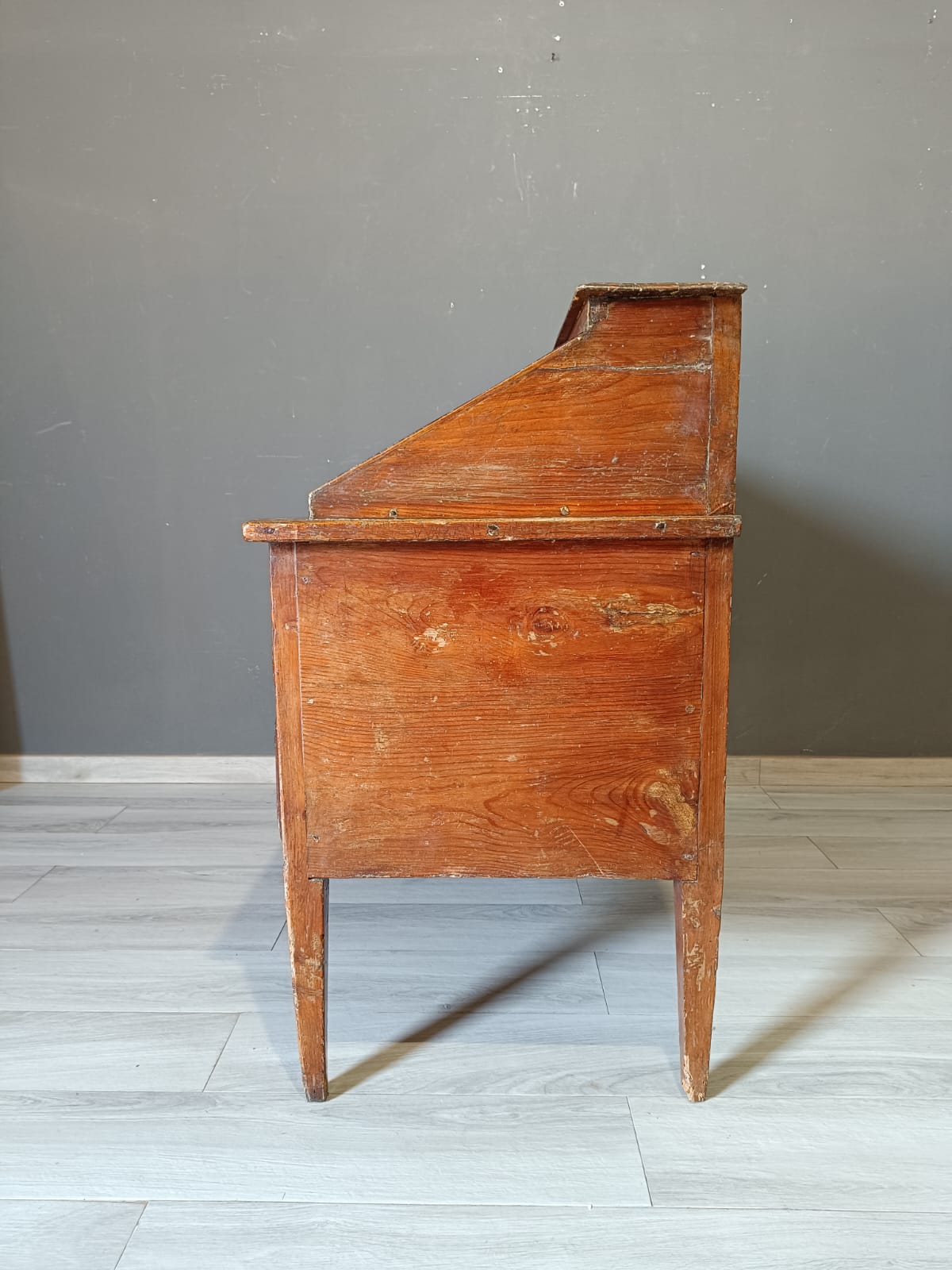 Antica ribalta di epoca Luigi XVI realizzata con castagno e larice. Sulla parte frontale vi sono due cassetti più la ribalta con cassettini interni.