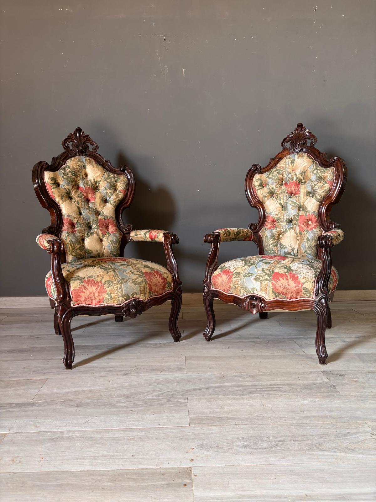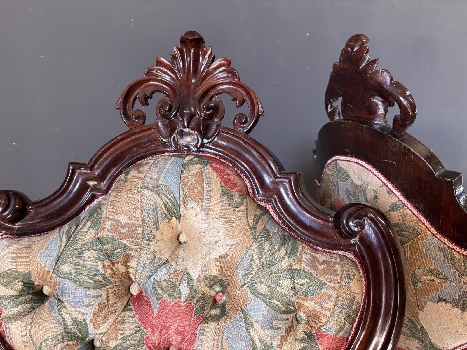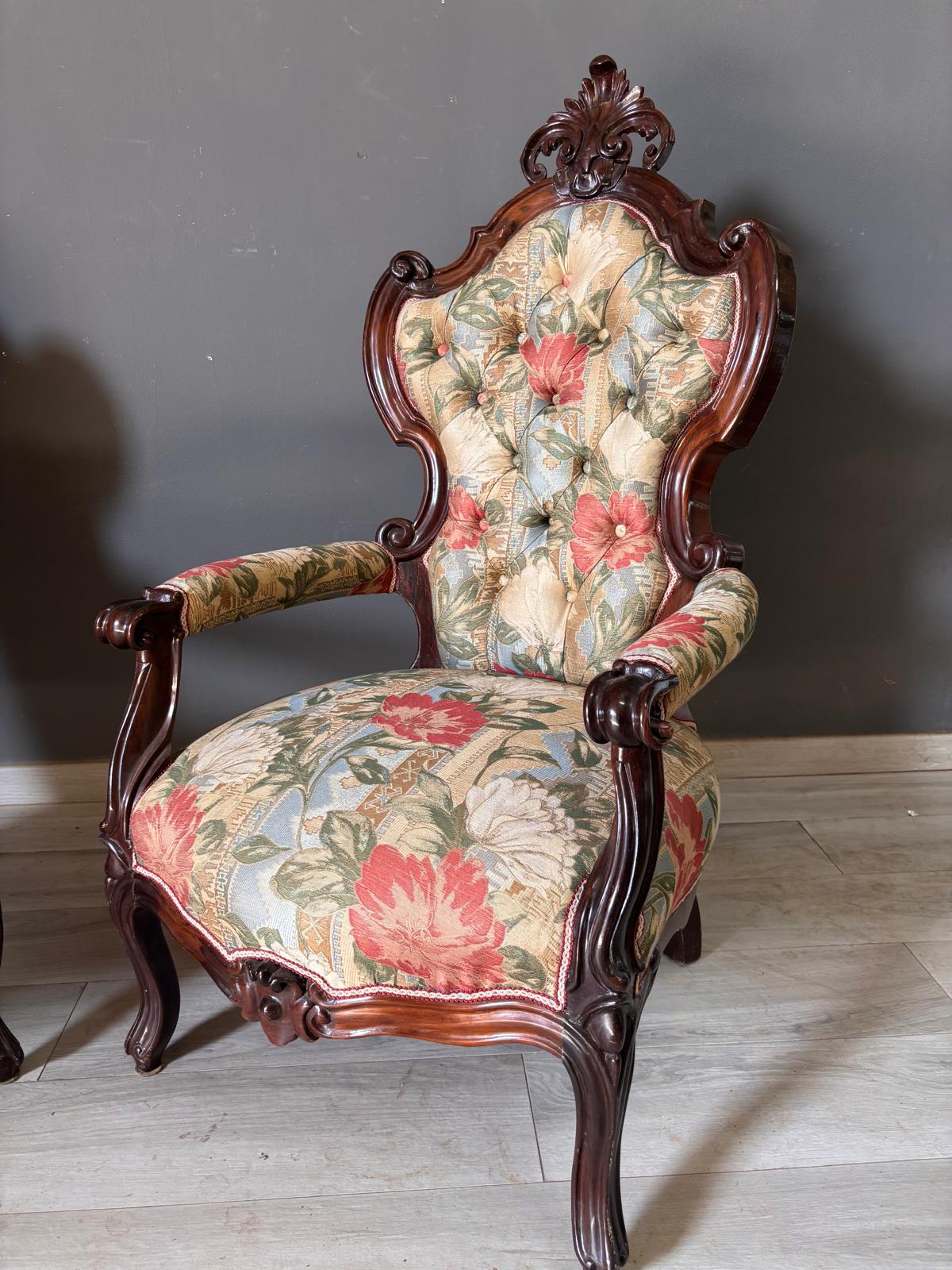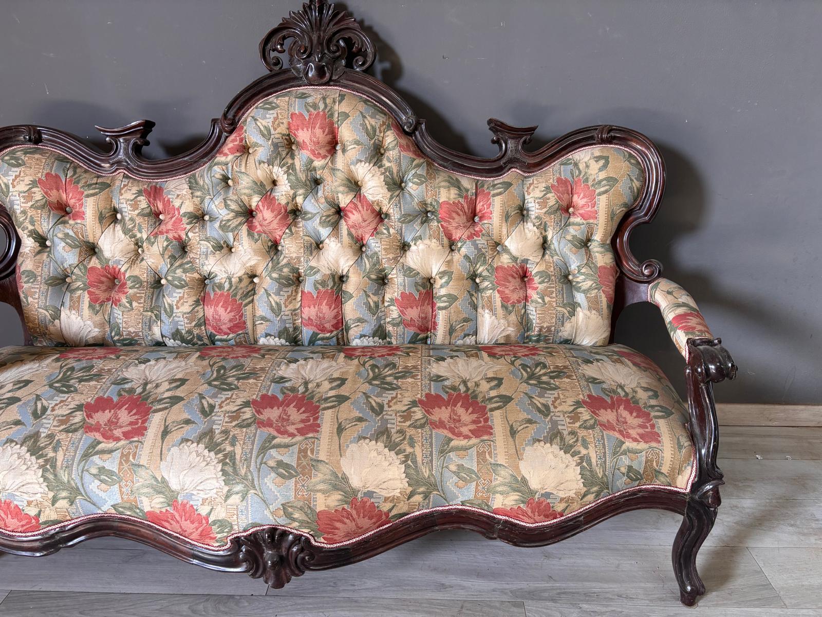 Importante salotto di epoca Luigi Filippo in palissandro finemente intagliato. Questo salotto è composto da n1. Divano, n.2 poltrone e n.4 sedie. La tappezzeria risulta essere completamente ricamata ed in perfetto stato conservativo (come si può notare dalle foto). Manifattura napoletana di grande ebanisteria.