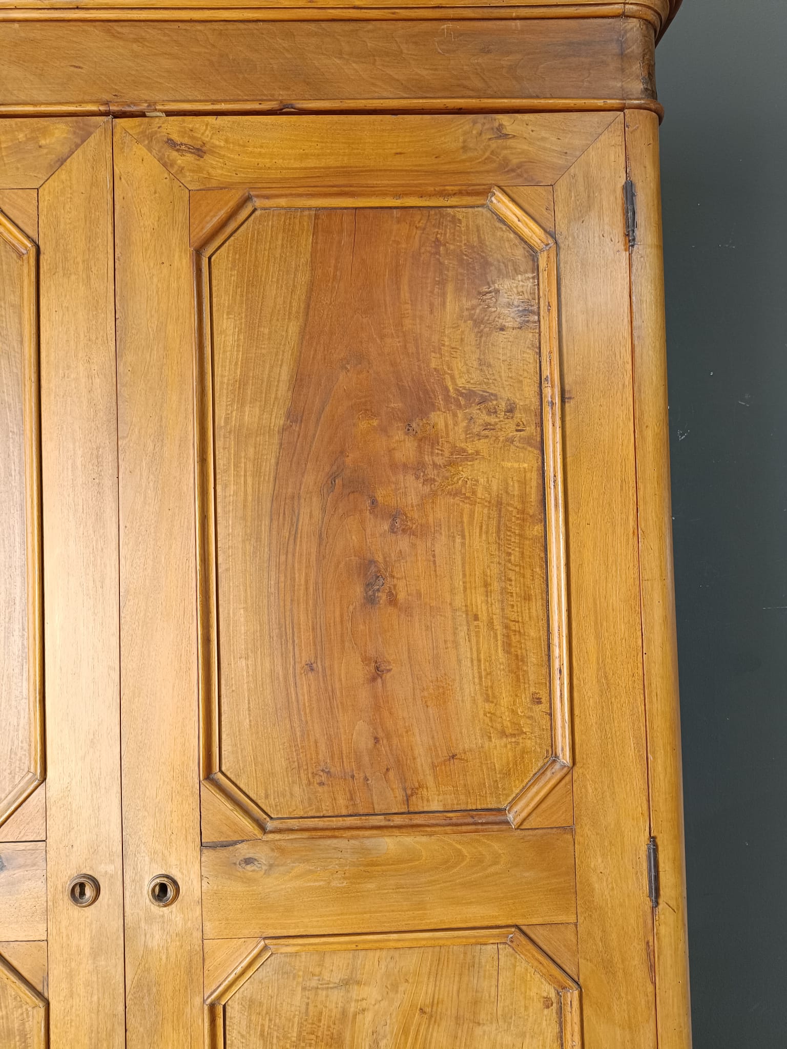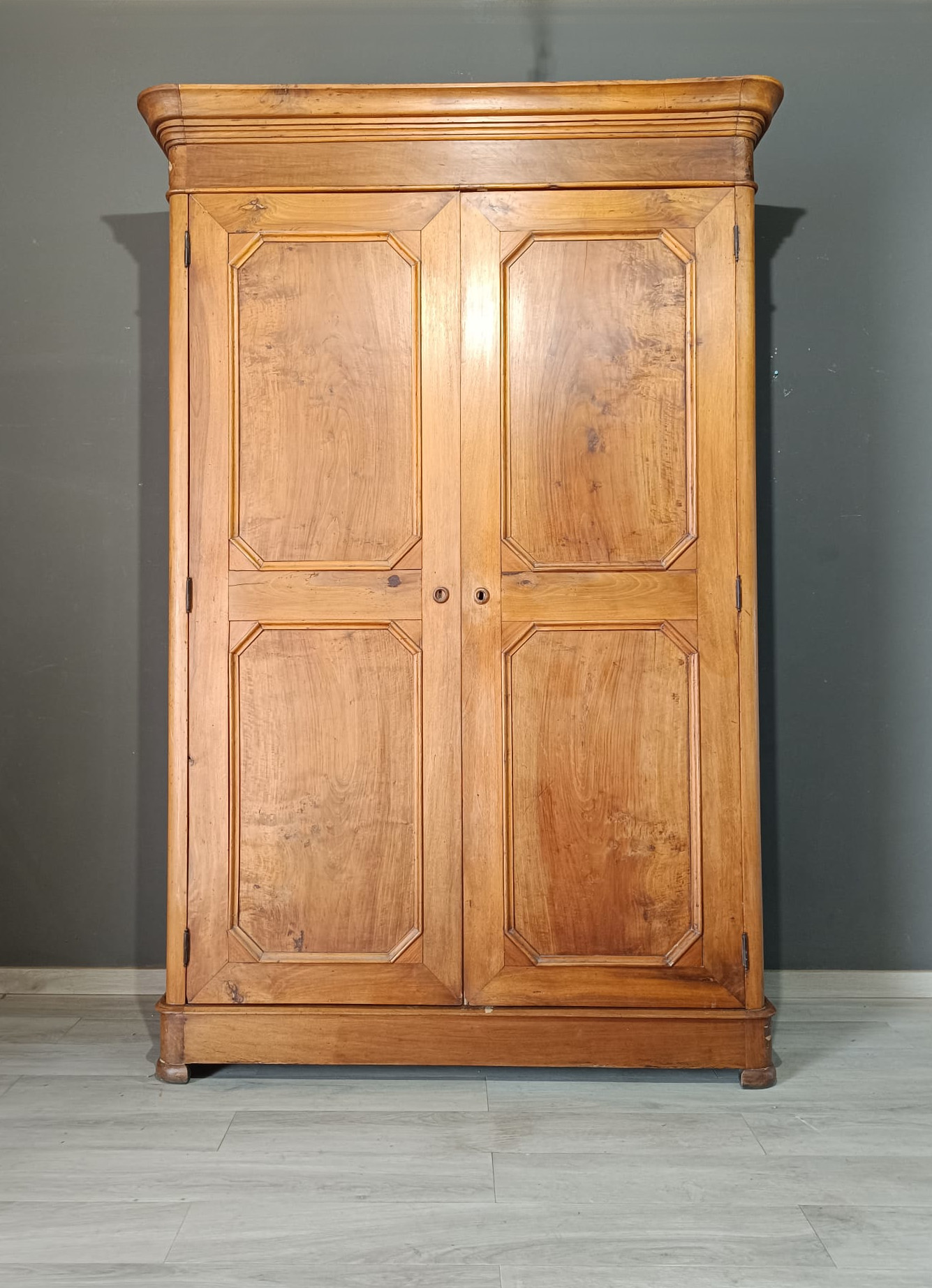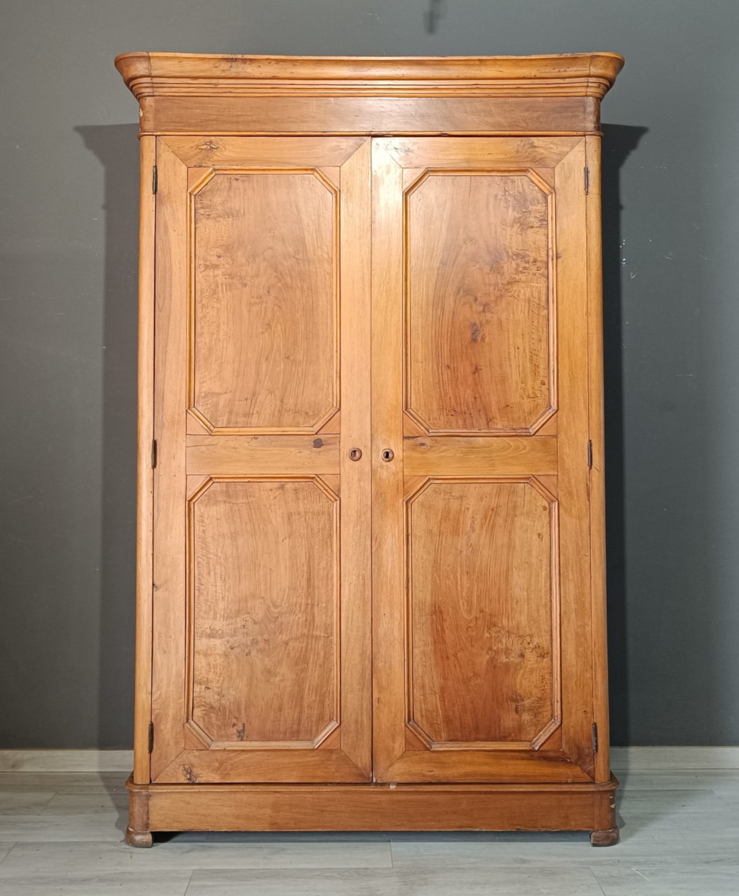 Antico e maestoso stipo Luigi Filippo di grandi dimensioni in massello di noce bionda con interni in pioppo. Lo stipo si presenta a due ante sagomate a tutt’altezza ed è conservato in ottimo stato.