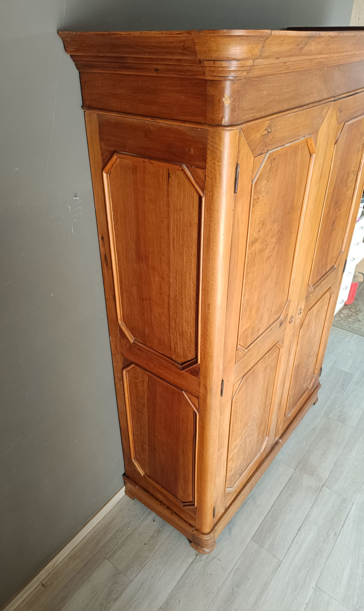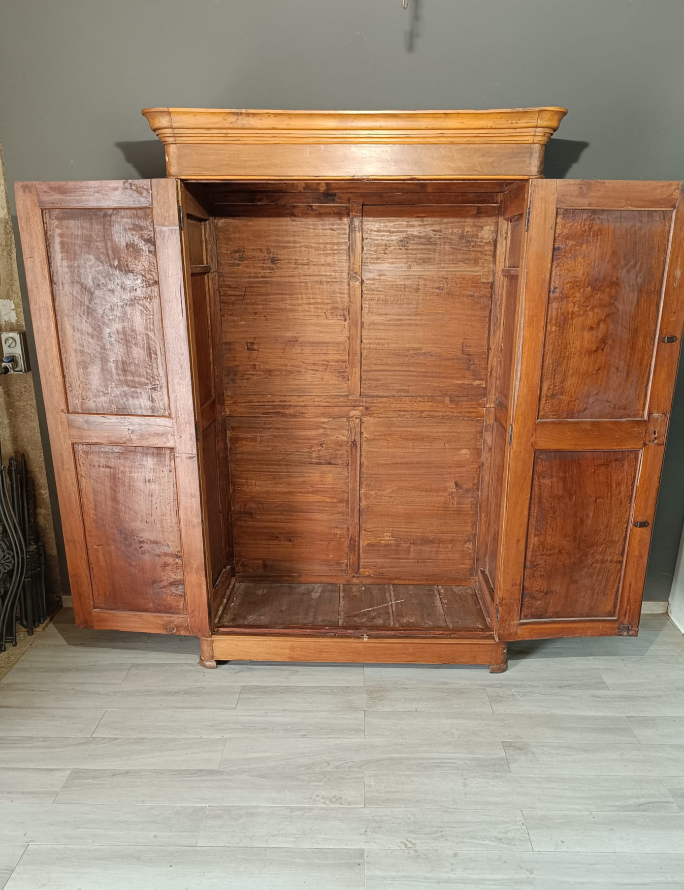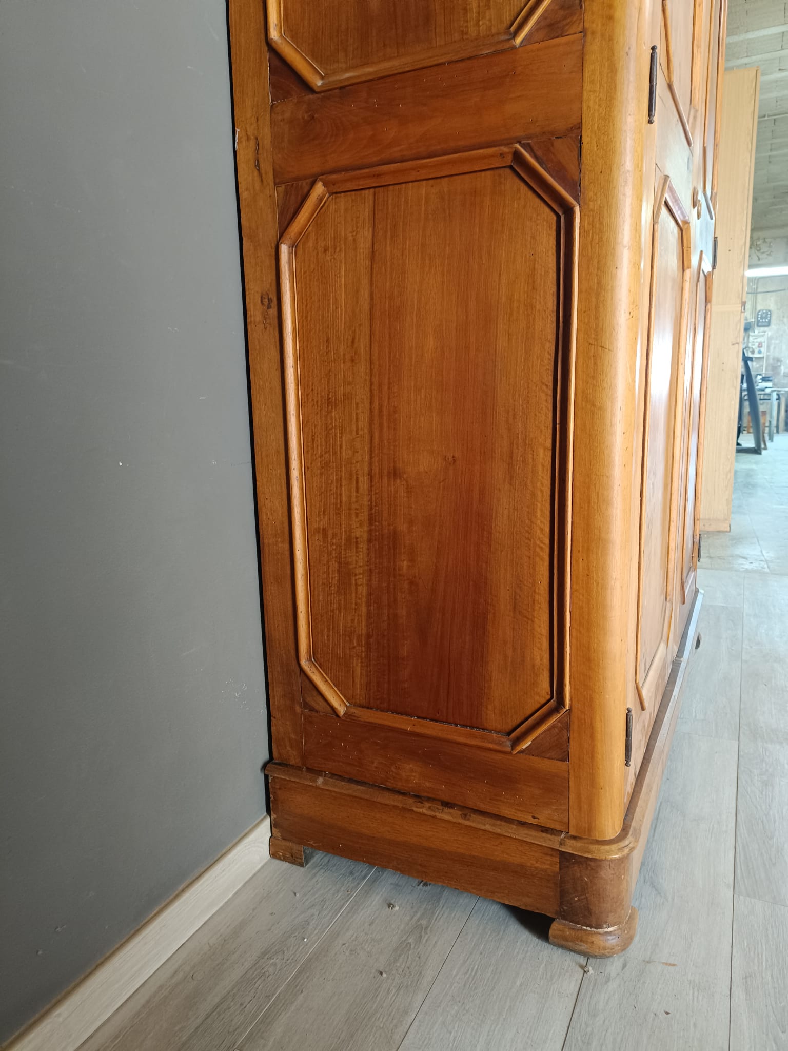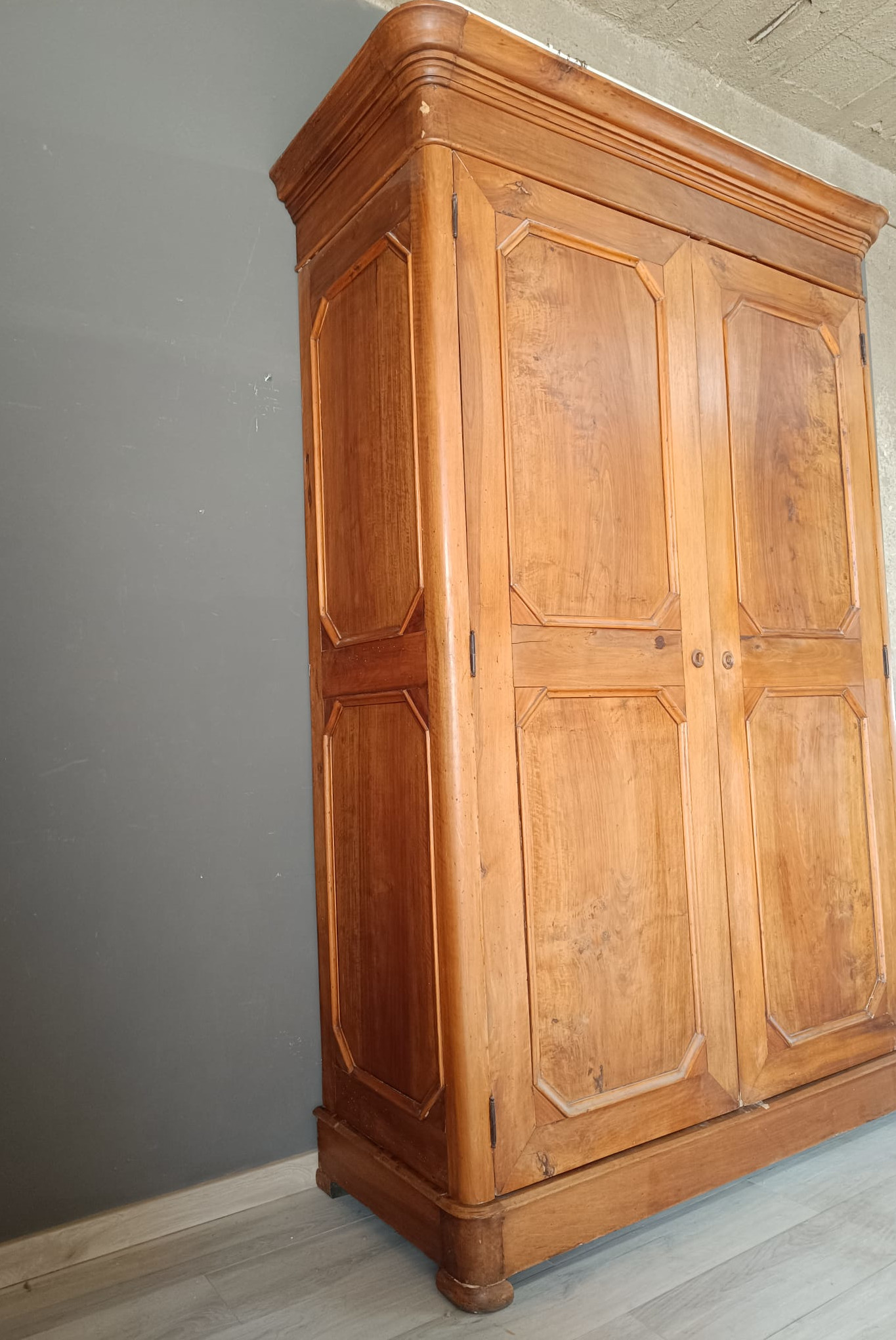 Antico e maestoso stipo Luigi Filippo di grandi dimensioni in massello di noce bionda con interni in pioppo. Lo stipo si presenta a due ante sagomate a tutt’altezza ed è conservato in ottimo stato.