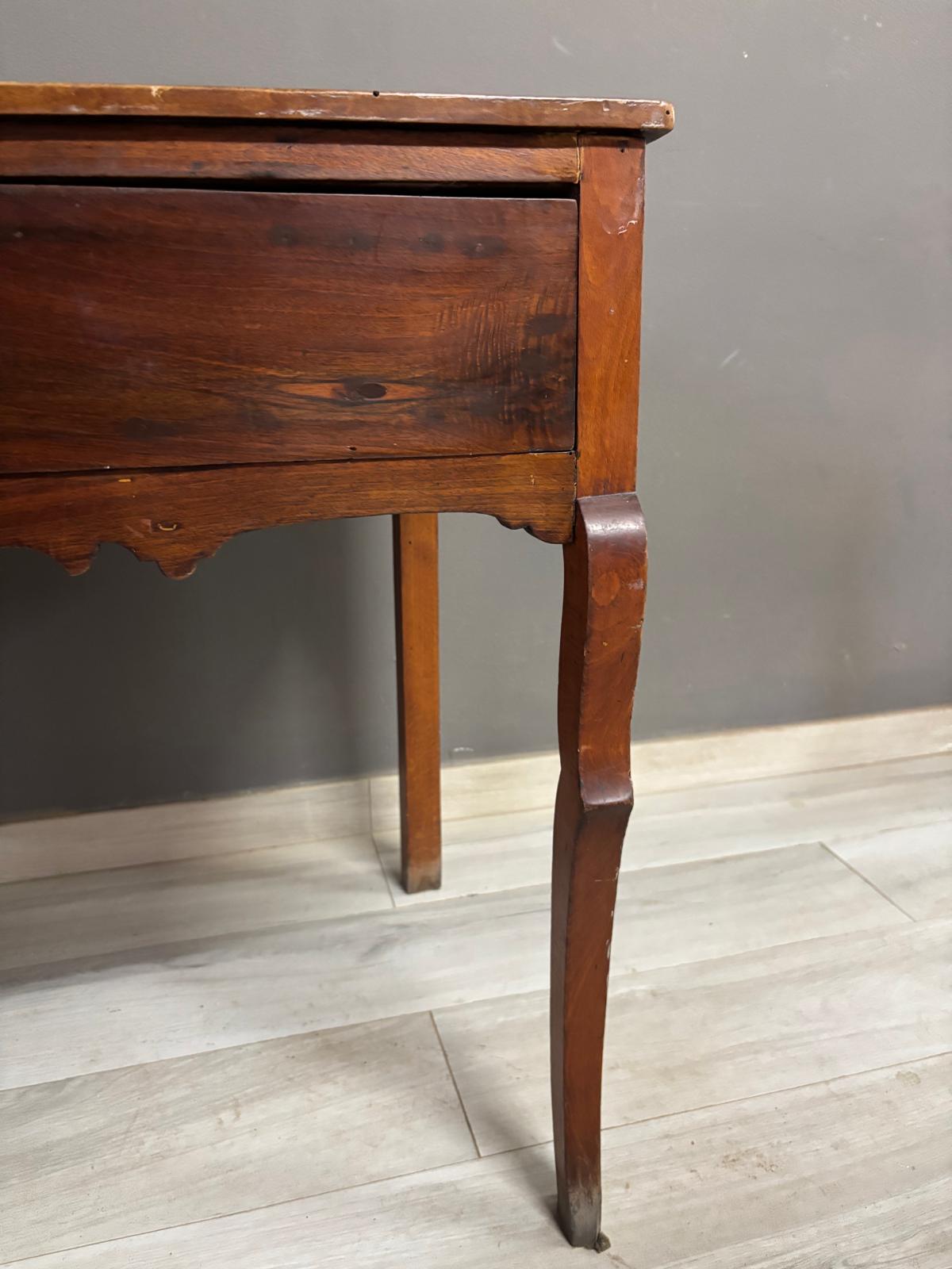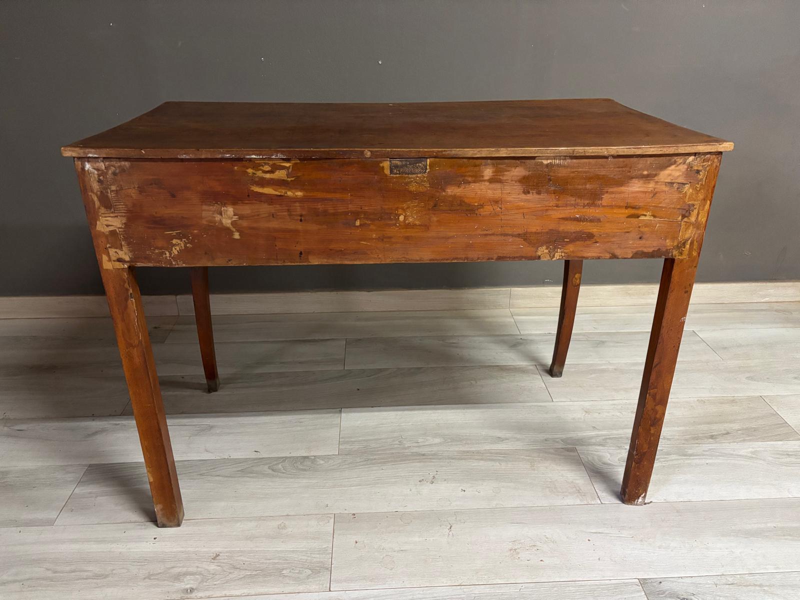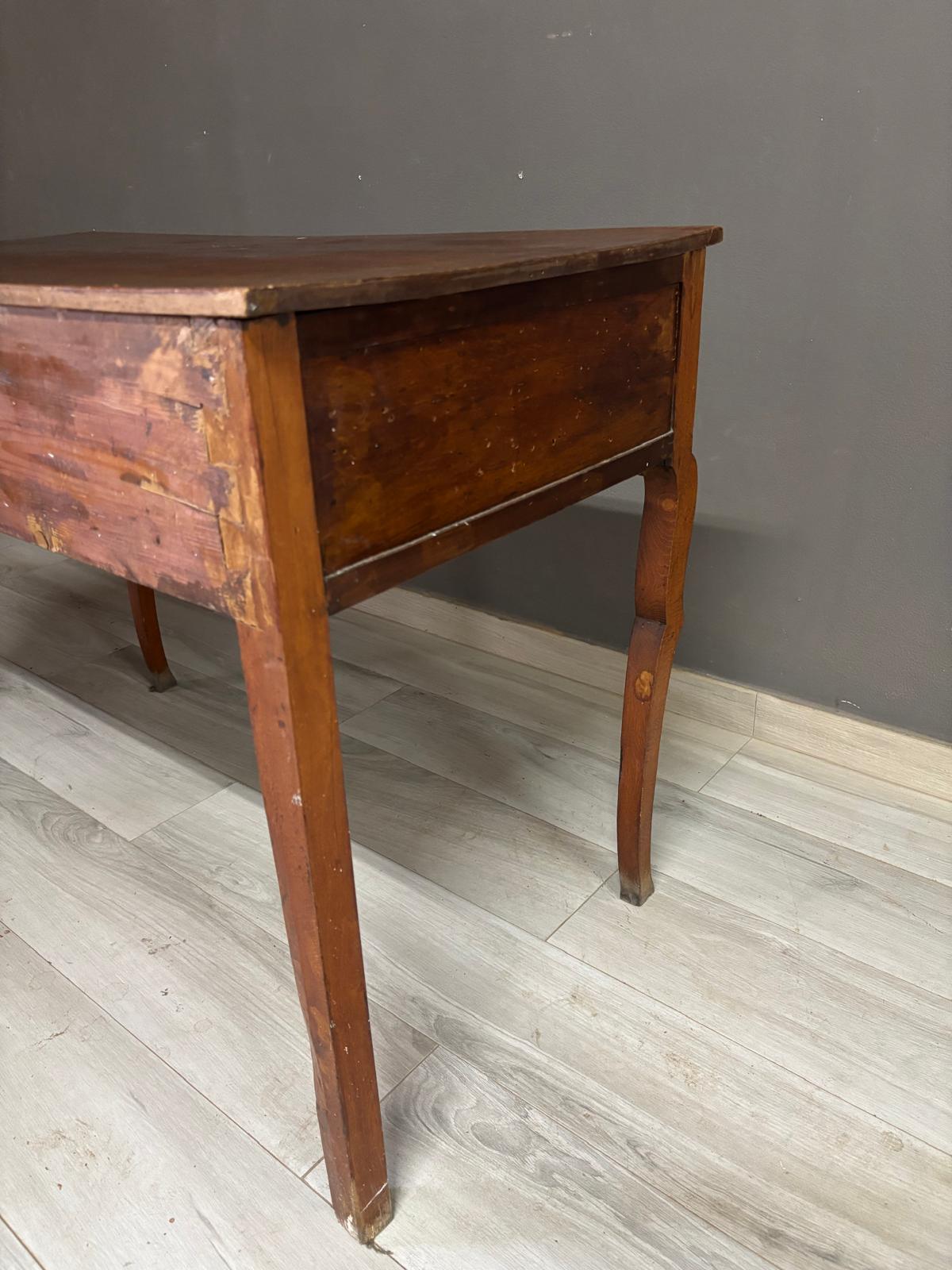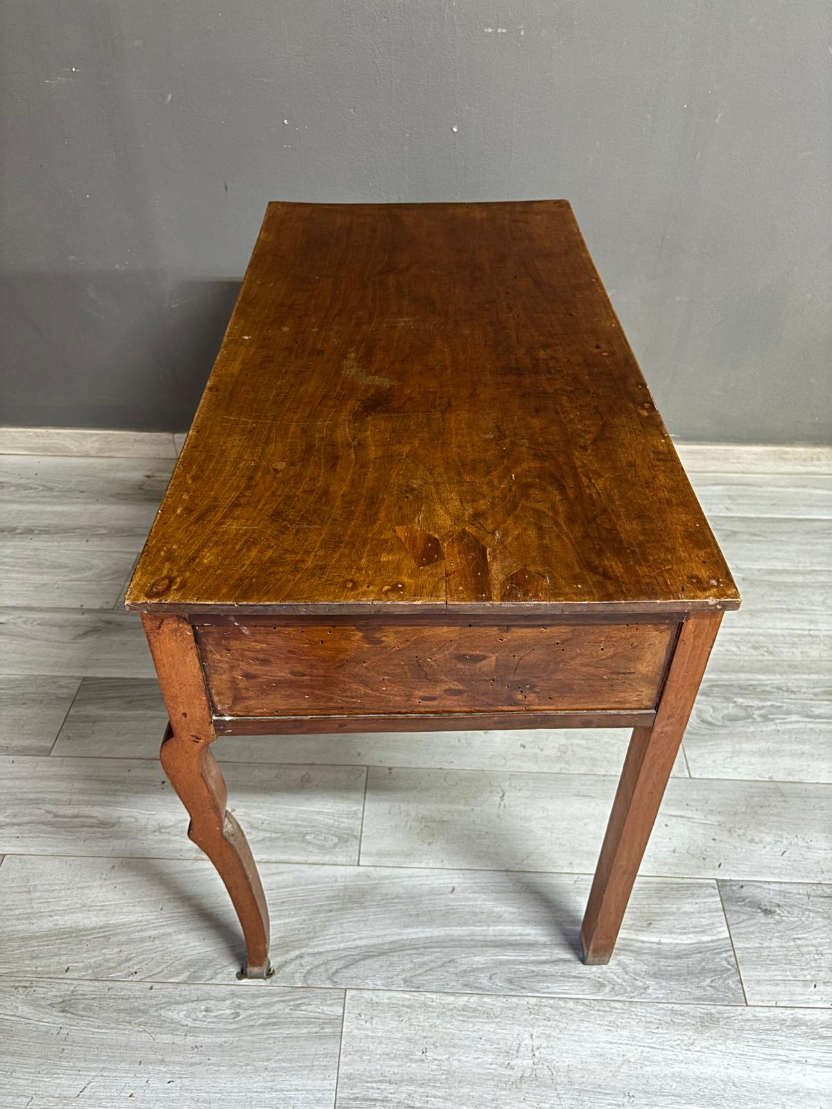 Tavolino da ingresso in massello di noce di epoca Direttorio ad un cassetto sul fronte. Conservato In patina.