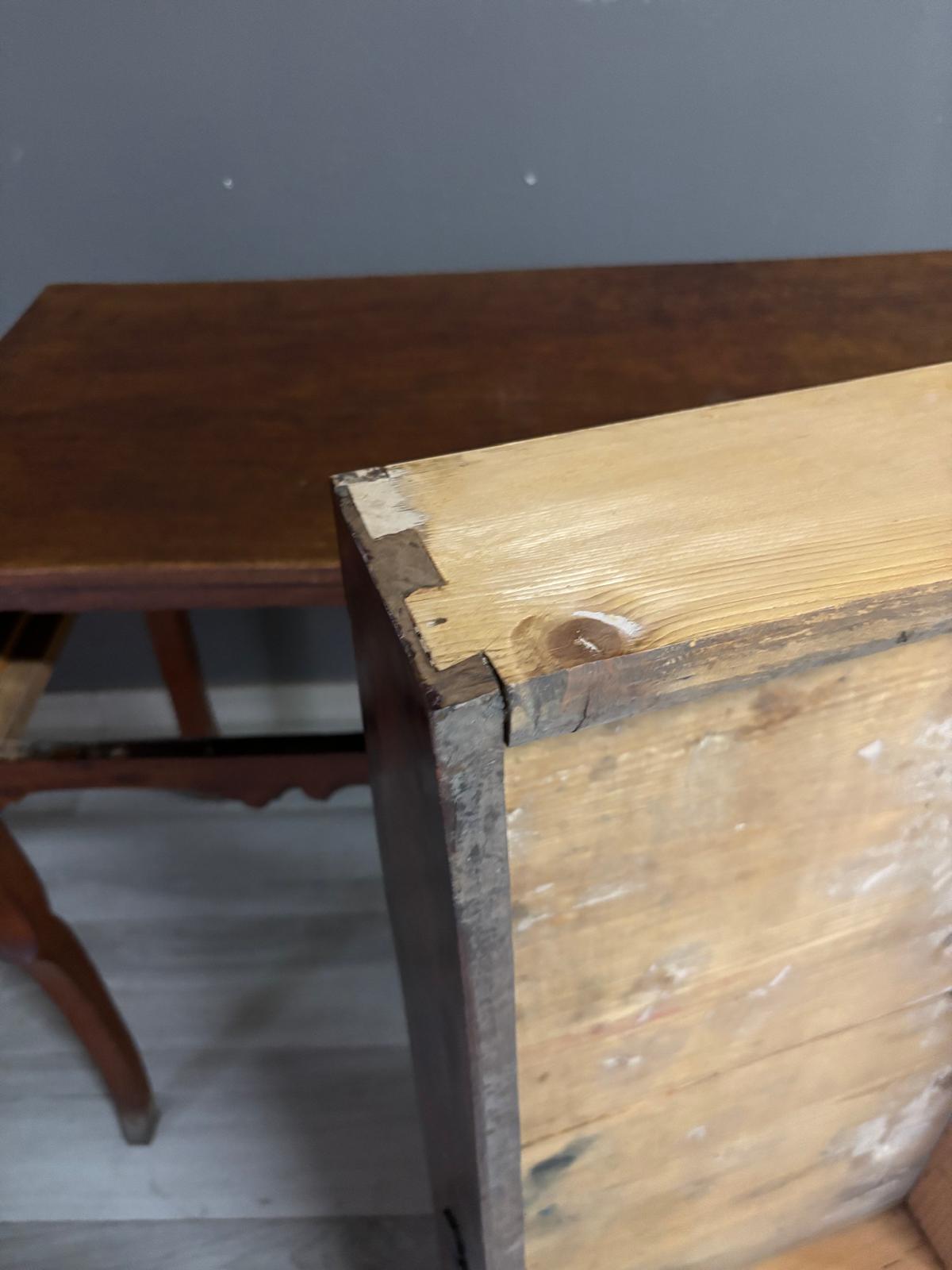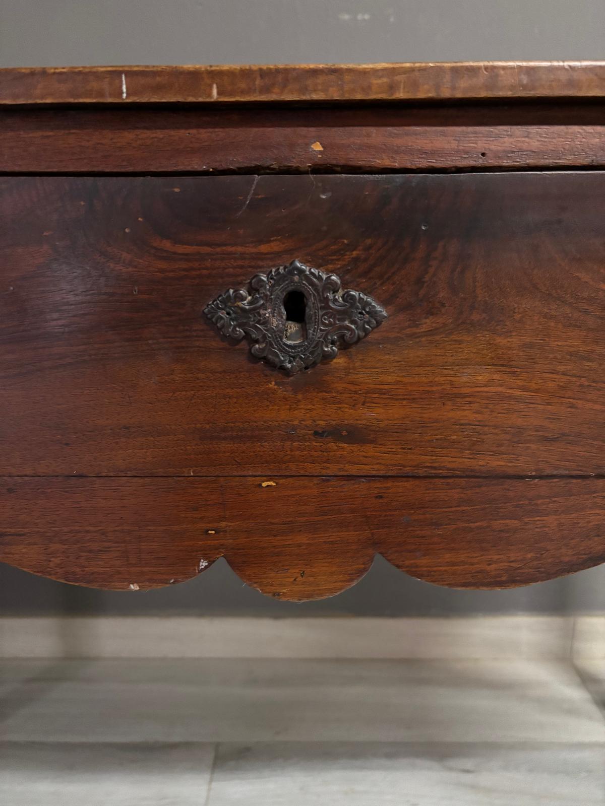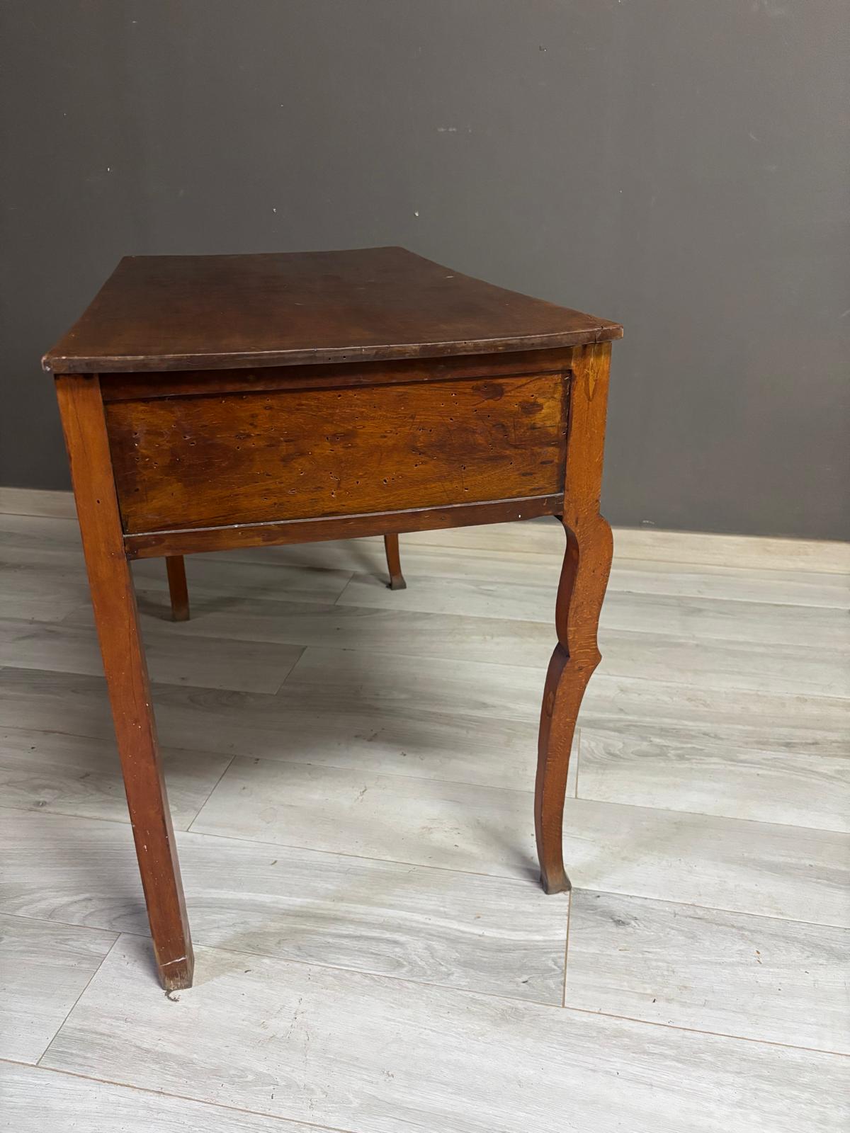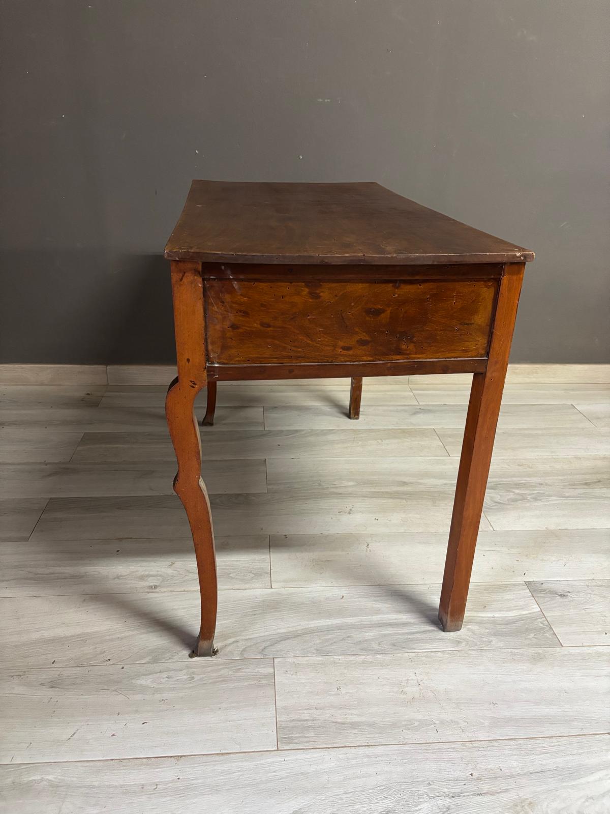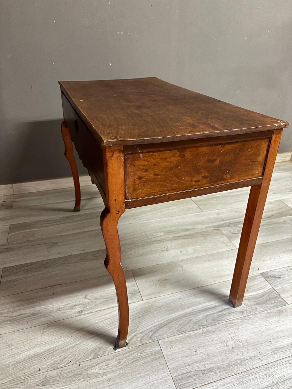Tavolino da ingresso in massello di noce di epoca Direttorio ad un cassetto sul fronte. Conservato In patina.