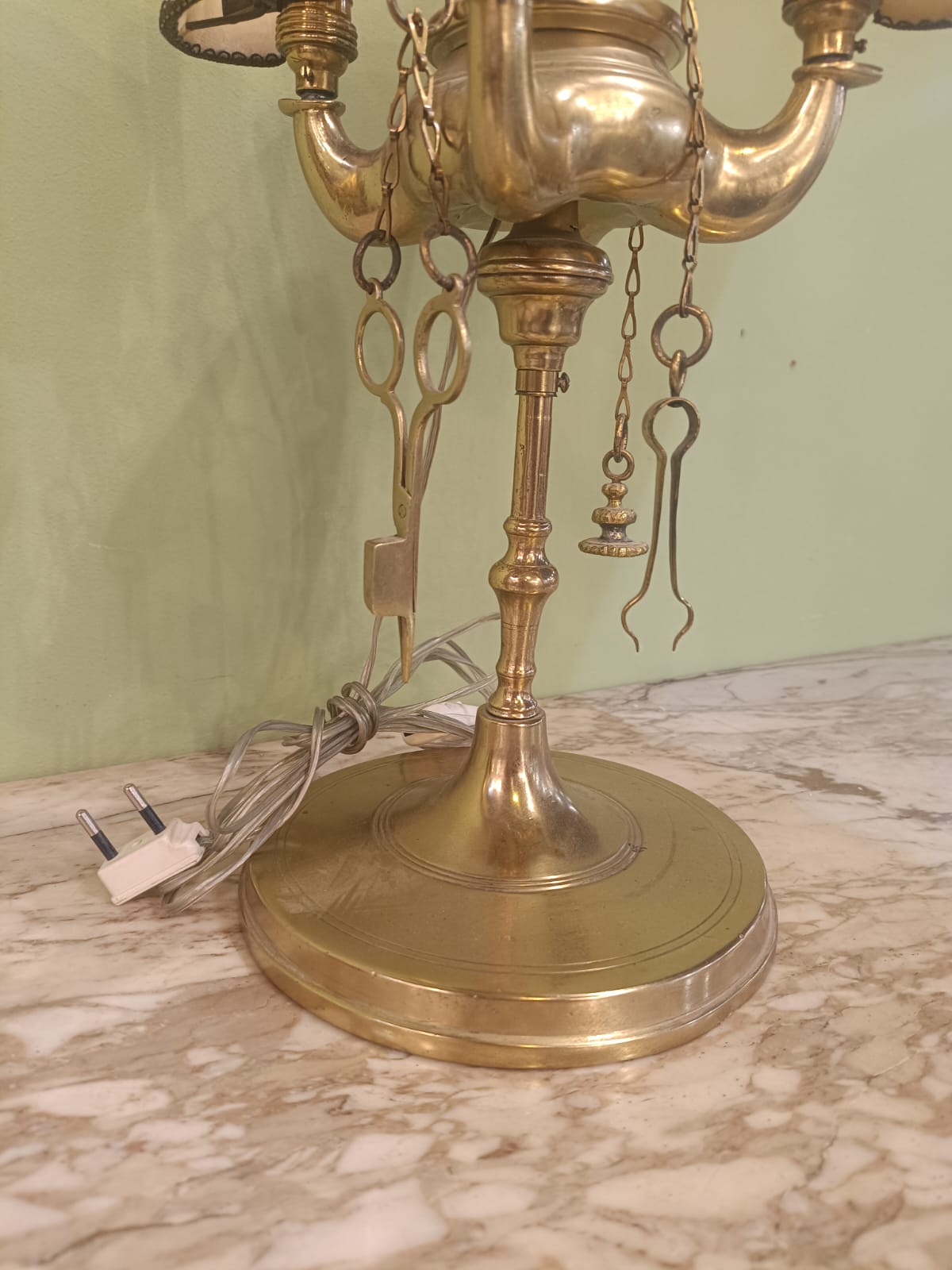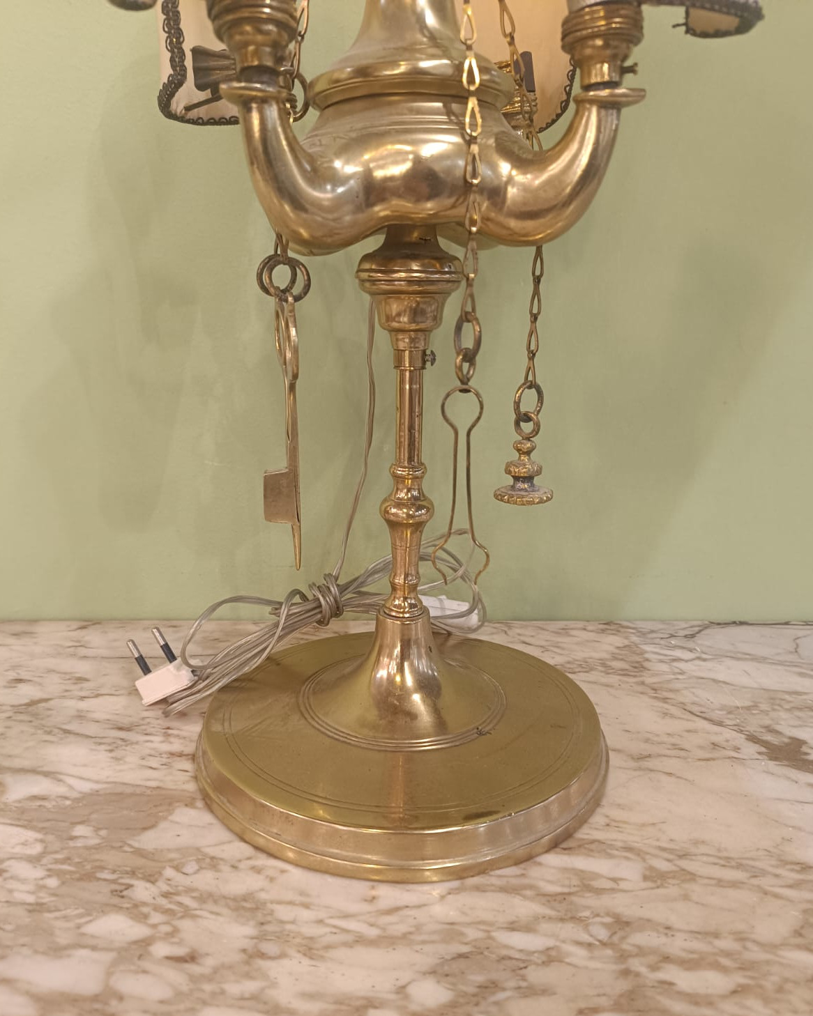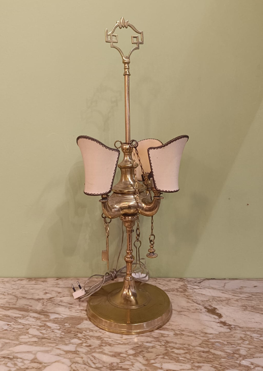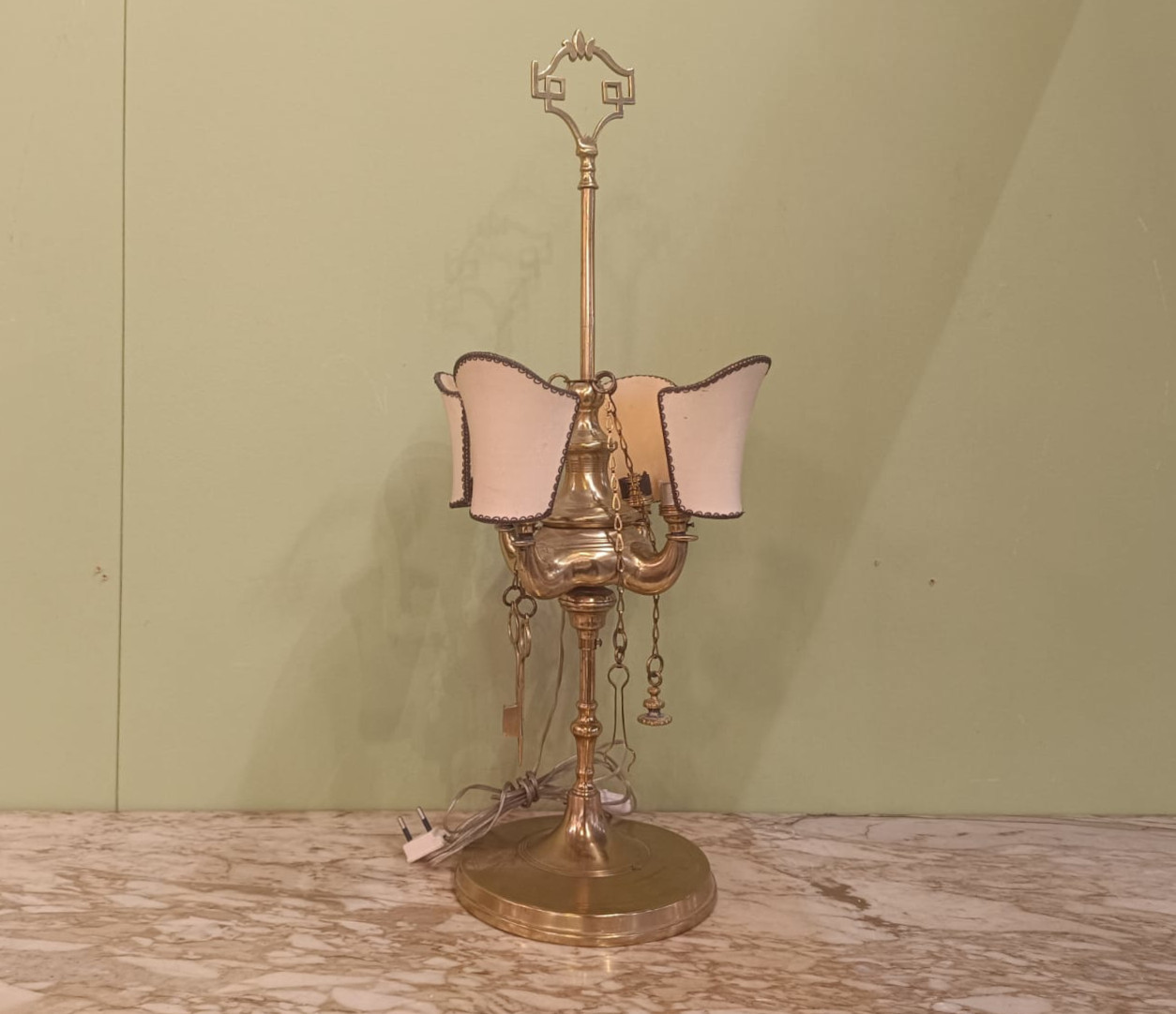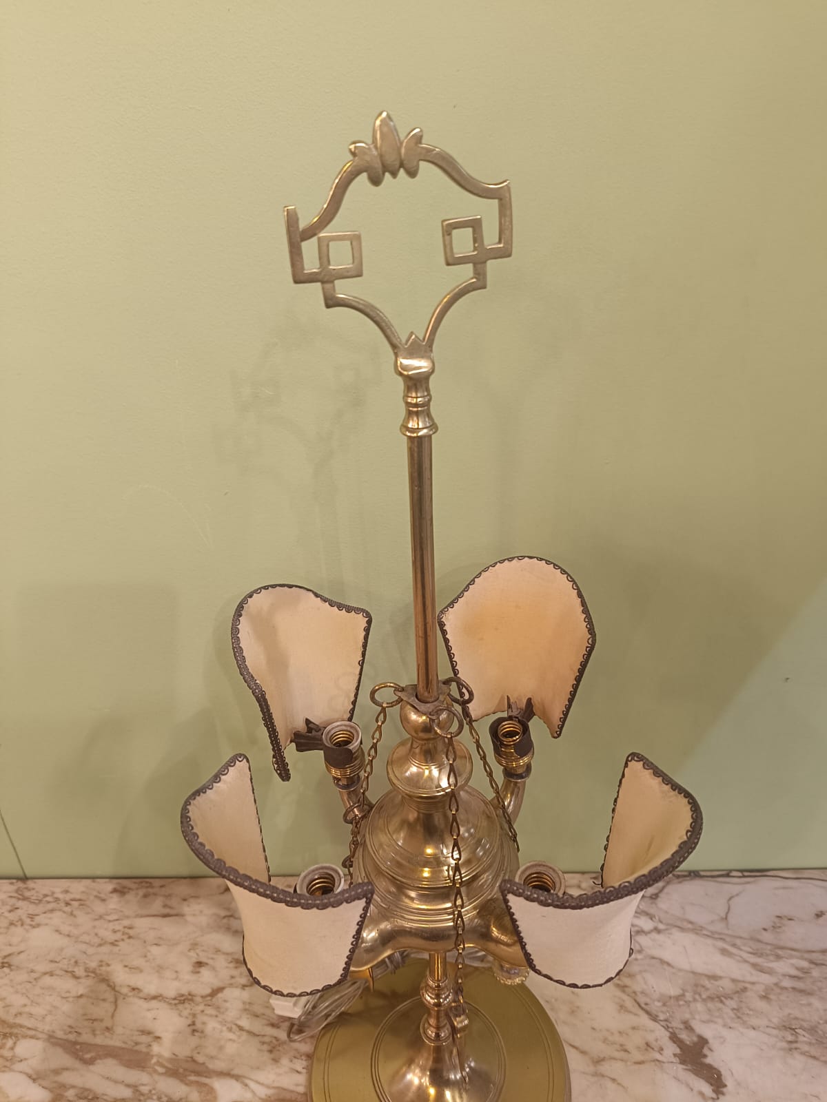 Antica lampada fiorentina a 4 luci con struttura in ottone. In ottimo stato conservativo.